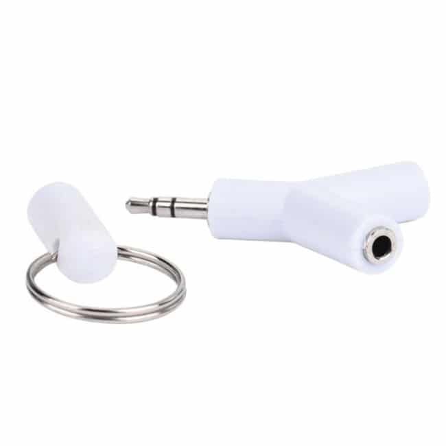 AUX splitter i nyckelringsformat som delar ett 3,5 mm ljuduttag i två utgångar. Anslut adaptern till mobil, surfplatta eller annan enhet med AUX och koppla in två hörlurar så att två personer kan lyssna samtidigt från samma källa. Den kompakta formen gör den enkel att ha på nyckelknippan och ta fram vid resor, pendling eller när ni vill dela musik eller ljud utan att byta hörlurar. Ansluts direkt utan inställningar.