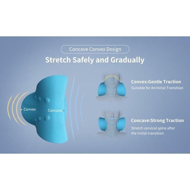 Ergonomisk nacksträckare som ger avlastning och avslappning i nacke och axlar vid vila. Placera stödet på golv, säng eller soffa och lägg nacken i den formade ytan för stabilt stöd. Tre massagekulor på varje sida skapar en lätt massagekänsla som kan hjälpa till att minska spänningar. Materialet i termoplastisk elastomer är mjukt och följsamt och anpassar sig efter nackens konturer för jämn tryckfördelning. Passar som ett enkelt hjälpmedel efter stillasittande arbete eller vid trötthet i nackområdet.