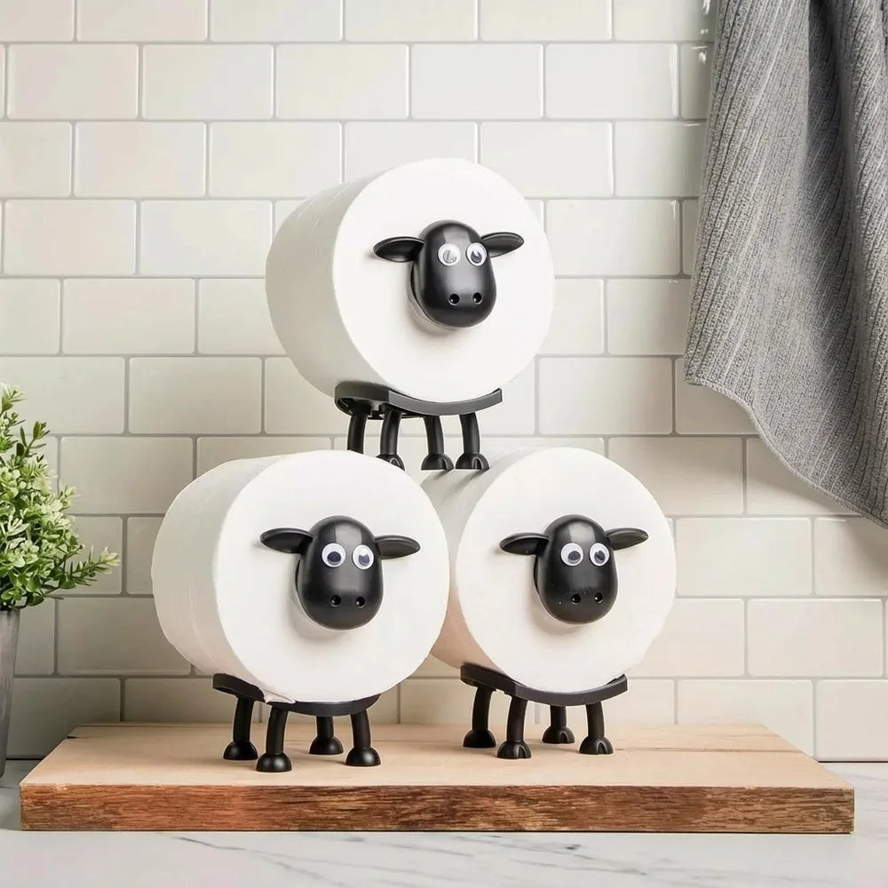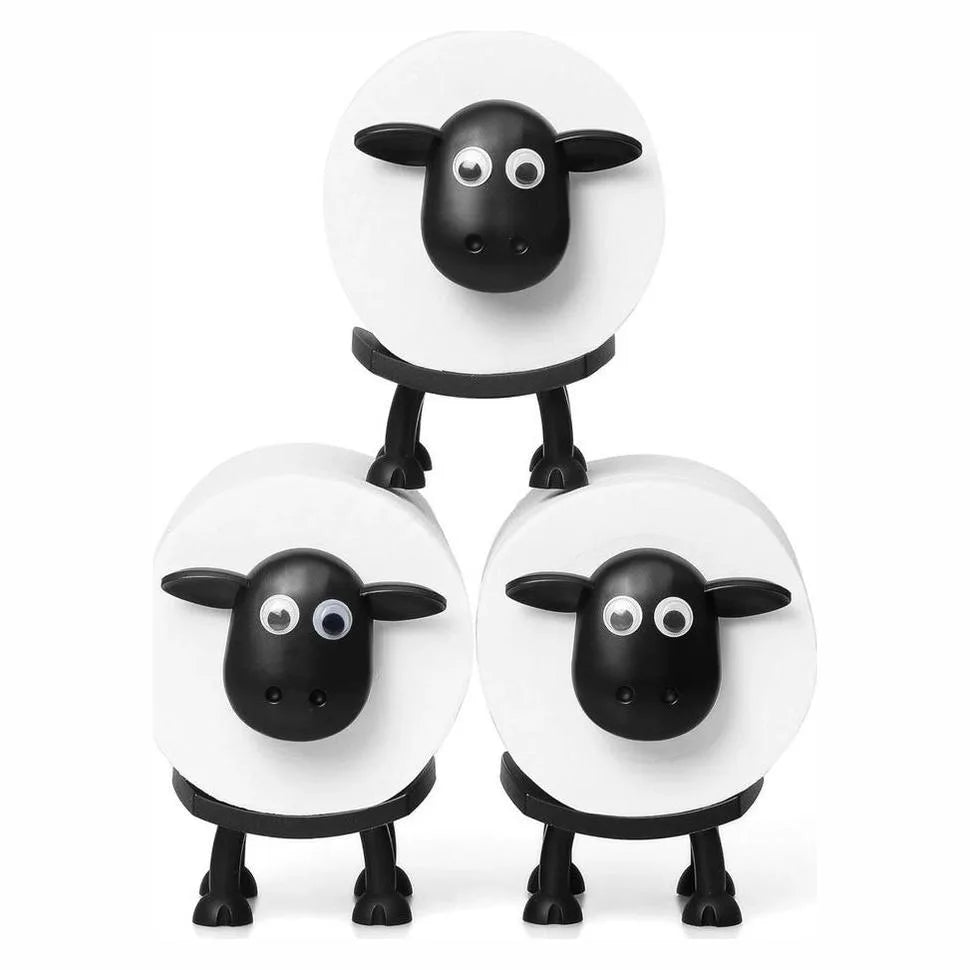 Toalettpappershållare i form av ett får som fungerar som fristående toalettpappersställ på bänk, hylla eller toalettcistern. Rullen träs enkelt på hållarens mittdel och hålls nära till hands utan väggfästen eller borrning. Konstruktionen i ABS-plast ger en lättavtorkad yta som passar i badrum och gäst-WC. Det kompakta formatet gör den smidig även i mindre utrymmen och hjälper till att hålla rullen borta från handfat och bänkskivor.