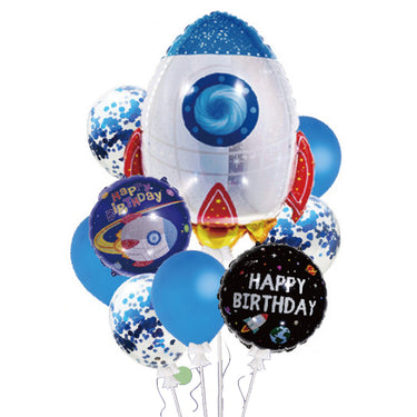 Rymd ballonger / raketballong – födelsedagsdekoration – 9 ballonger, ballongband