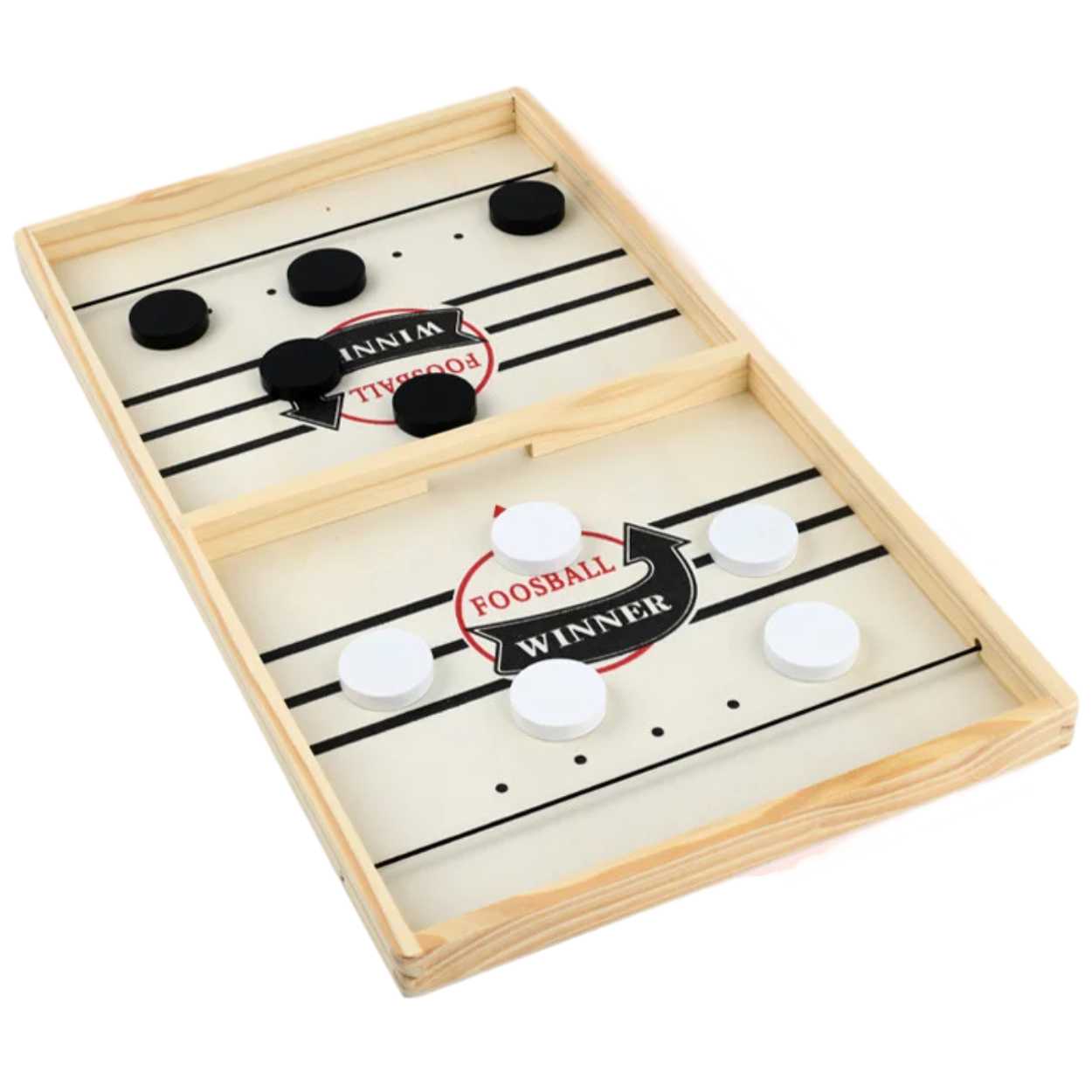 Sling puck är ett snabbt och intensivt tvåspel där målet är att slunga alla puckar genom öppningen i mitten till motståndarens sida. Spelet är lätt att förstå och passar både barn och vuxna när man vill ha korta, actionfyllda matcher. Spelplanen i trä ger en stabil yta som tål högt tempo, och de 10 puckarna gör att ni kan spela direkt utan extra tillbehör. Perfekt när du vill ha ett enkelt sällskapsspel som tränar precision, reaktion och timing.