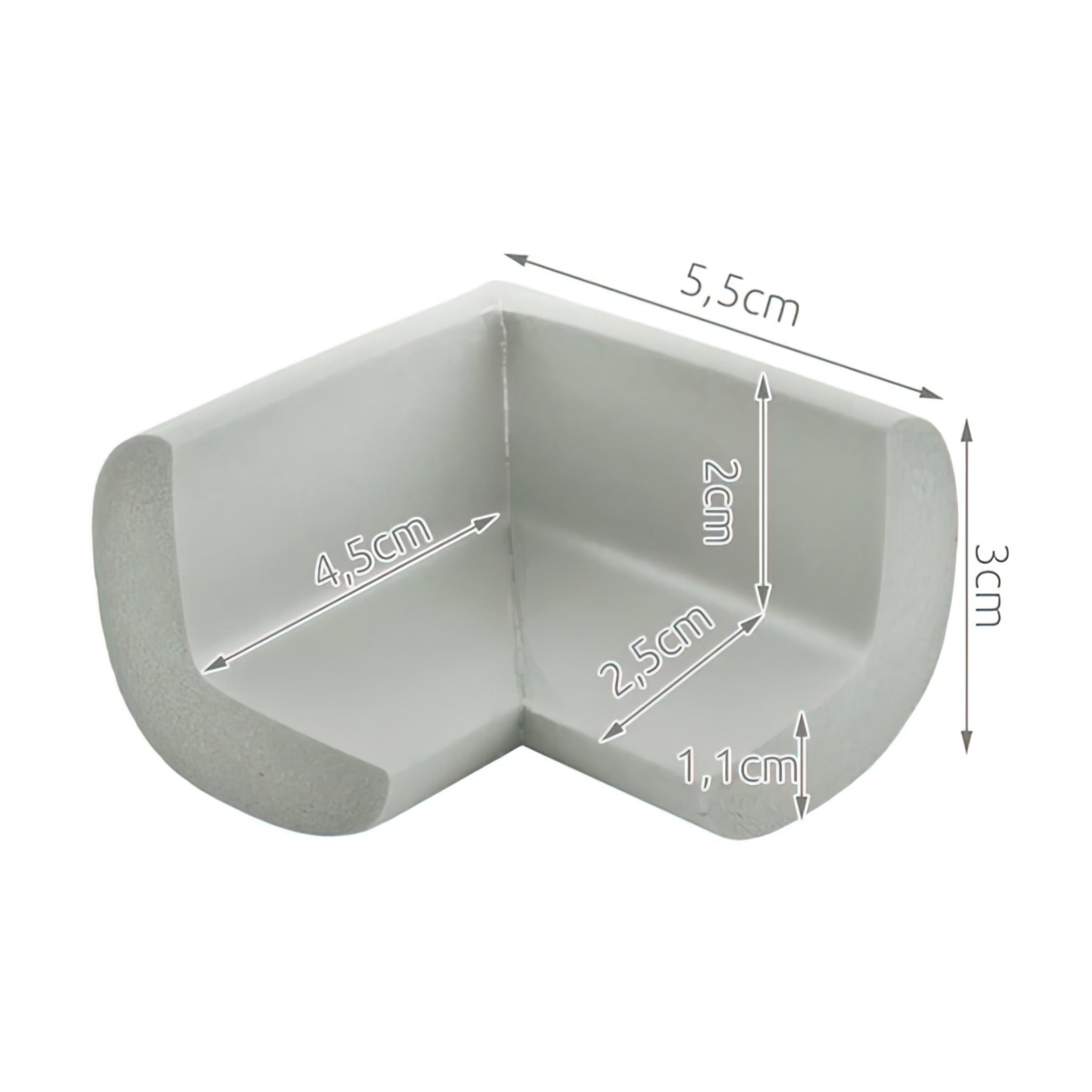 Hörnskydd för möbler som minskar risken för skador från vassa hörn i hemmet. Skydden är tillverkade i mjukt skumgummi med rundade kanter som dämpar stötar mot bord, bänkar och fönsterbrädor. Montering sker enkelt med medföljande dubbelhäftande tejp så att skydden sitter stabilt på plats. Passar både barnsäkring och för att undvika smärtsamma stötar för vuxna i trånga utrymmen. En praktisk lösning för flera rum och ytor där skarpa hörn behöver göras säkrare.