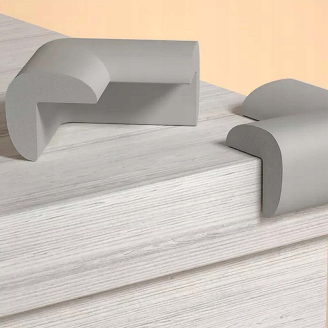 Hörnskydd i mjuk skumplast som minskar risken för skador från vassa möbelhörn i hemmet. Skydden ger stötdämpning vid stötar och fall och passar vanliga hörn på bord, bänkar och skåp. Montering sker med medföljande dubbelhäftande klisterlappar för stabil fastsättning. Rengör och avfetta ytan innan montering för bästa vidhäftning. Varje hörnskydd har 10 mm skumtjocklek och en kompakt form som skyddar utan att ta onödig plats.