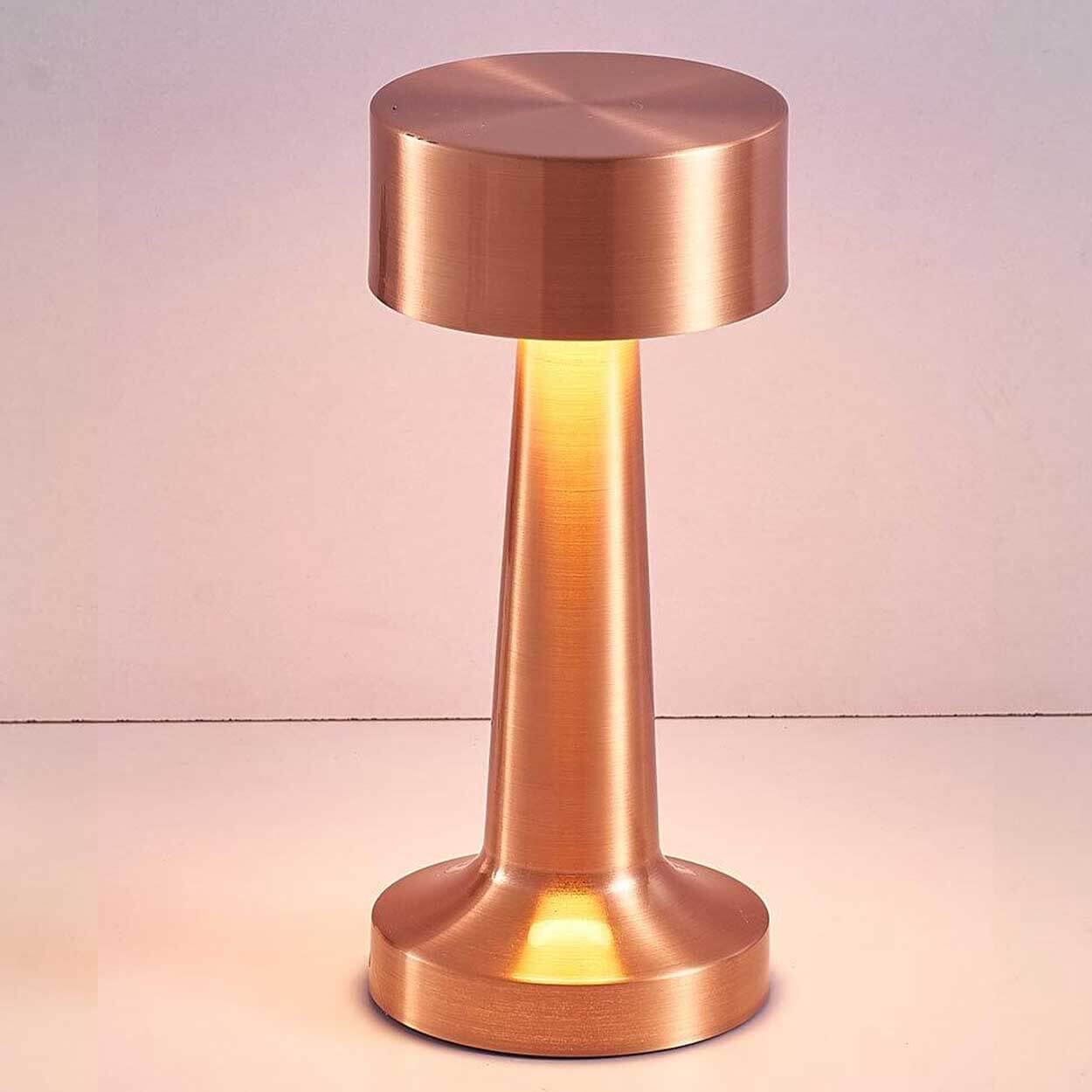 Uppladdningsbar bordslampa i metall som ger flexibel stämningsbelysning utan sladd. Touchstyrning på toppen gör det enkelt att tända, växla mellan ljuslägen och dimra steglöst genom att hålla fingret kvar. Lampan erbjuder två färgtemperaturer, 2000K för varmt sken och 6500K för kallare arbetsljus. Batteritiden är cirka 15 timmar och laddning tar 3–4 timmar via USB-C. Laddkabel medföljer, vilket gör lampan smidig att använda på uteplats, balkong eller i serveringsmiljö.