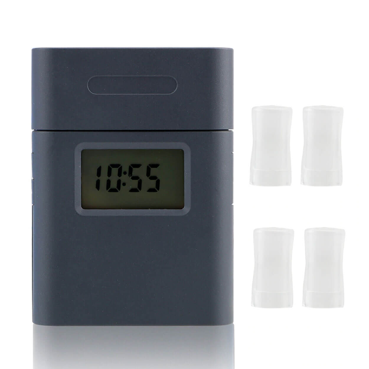 Portabel alkomätare som ger en snabb indikation på alkoholnivå via en tydlig digital display. Uppstart tar under 10 sekunder och mätresultat visas på under 5 sekunder, vilket gör den smidig för snabba kontroller. Mätupplösningen är 0,01% BAC (0,1 g/l). Fyra återanvändbara munstycken medföljer för mer hygienisk användning. Automatisk avstängning hjälper till att spara batteri. Drivs av två AAA-batterier (ingår ej). För bästa resultat bör du undvika mat och dryck cirka 20 minuter före test.