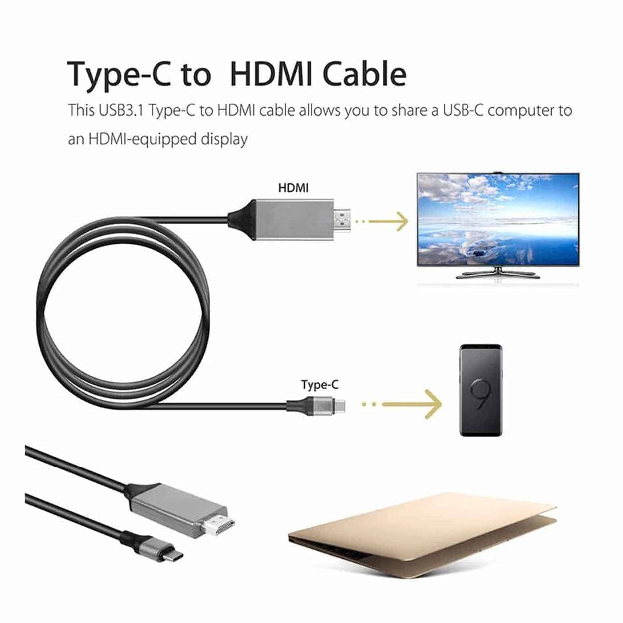 Usb c / hdmi kabel – bildöverföring till skärm – 4K upplösning, 2 m