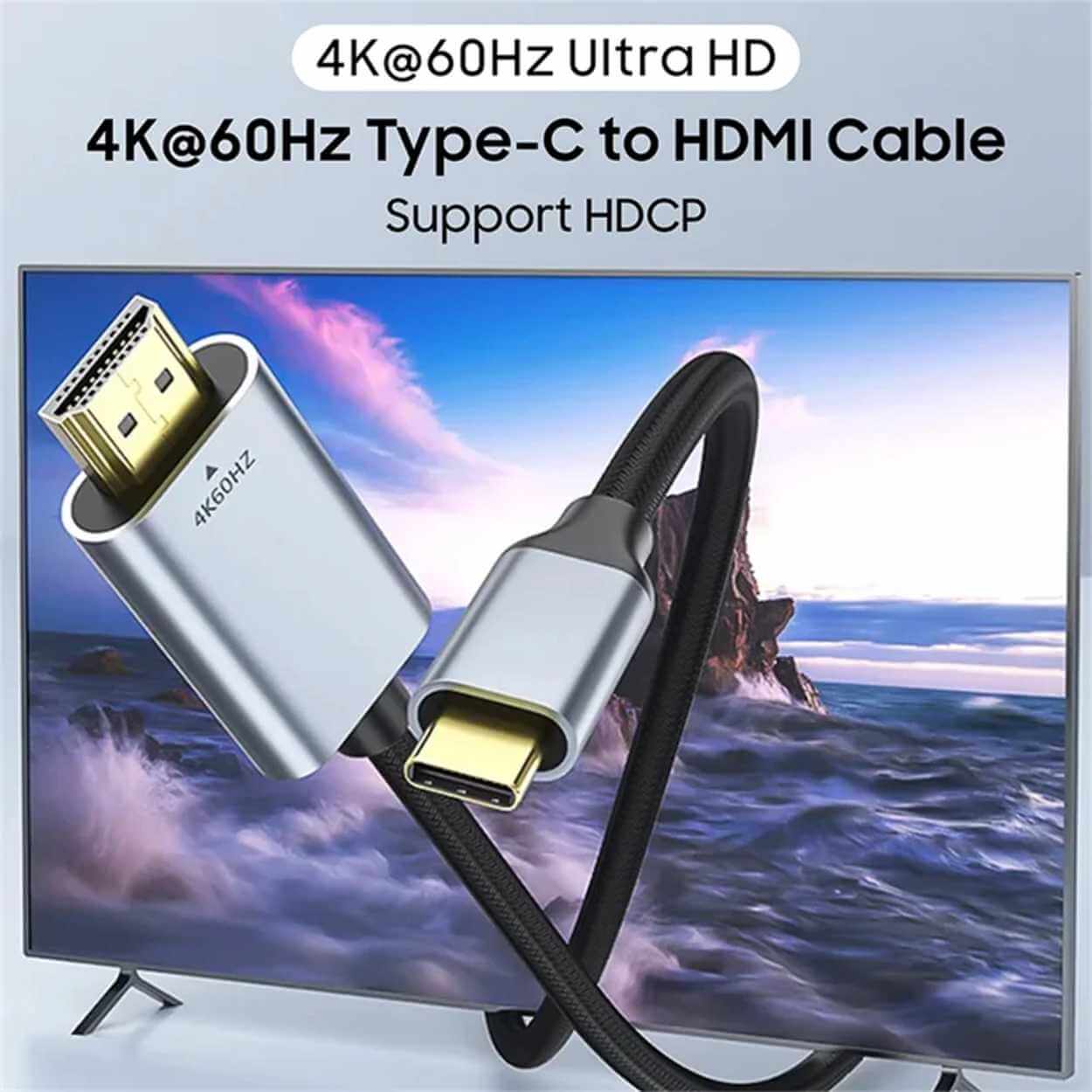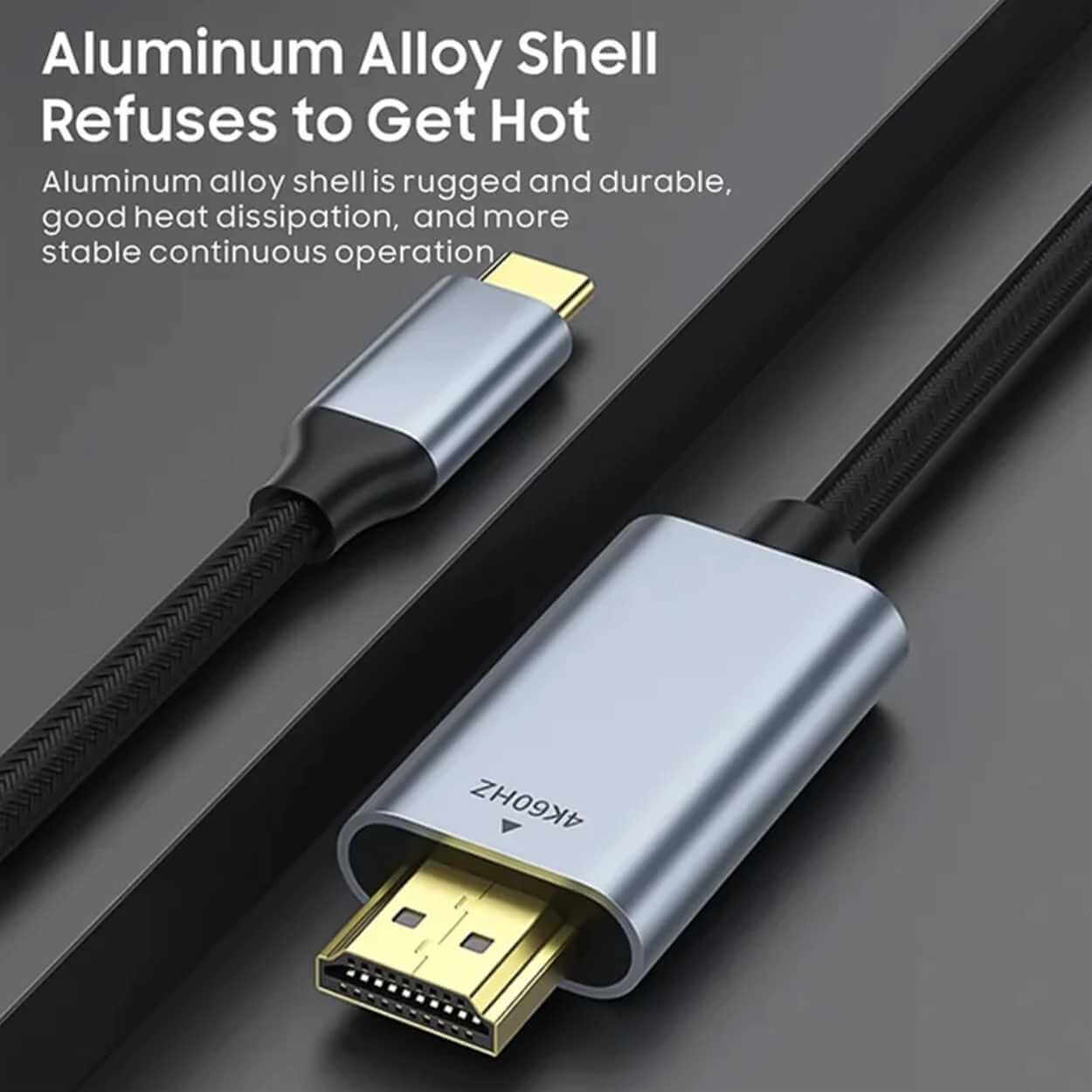 Usb-c / hdmi kabel – videoanslutning skärm – 4K 60 Hz, 2 m, guldpläterade kontakter