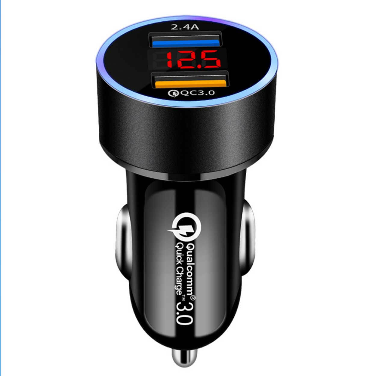 Billaddare med dubbla USB-A portar för snabb och smidig laddning i bilen. Maxeffekt på 22,5 W och stöd för Quick Charge 2.0/3.0 gör att kompatibla enheter kan laddas snabbare, samtidigt som två telefoner kan laddas parallellt. Inbyggt intelligent chipset ger skydd mot överström och överladdning för trygg användning under körning. LED-displayen visar bilbatteriets spänning så att du enkelt kan hålla koll på elsystemet. Passar i de flesta fordon med standard cigarettändaruttag.