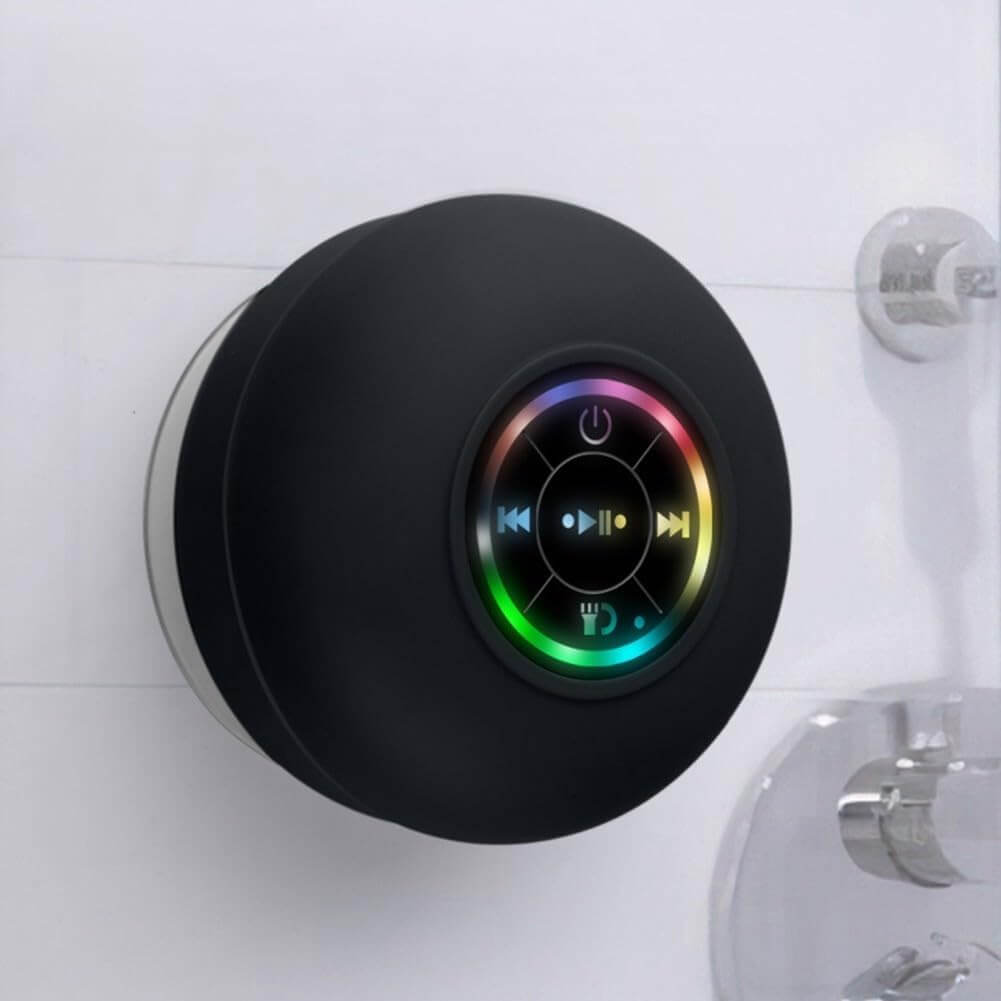Vattentät duschhögtalare som ger trådlös musik och samtal i våtutrymmen. Sugkoppfästet gör att högtalaren kan monteras på släta ytor som kakel, glas eller spegel. Bluetooth 3.0 + EDR ger stabil anslutning med cirka 10 meters räckvidd. Inbyggd mikrofon gör det enkelt att ta handsfree-samtal. IPX4-klassningen skyddar mot vattenstänk och den inbyggda 400 mAh litiumbatteriet ger upp till cirka 6 timmars drift. Laddkabel ingår.