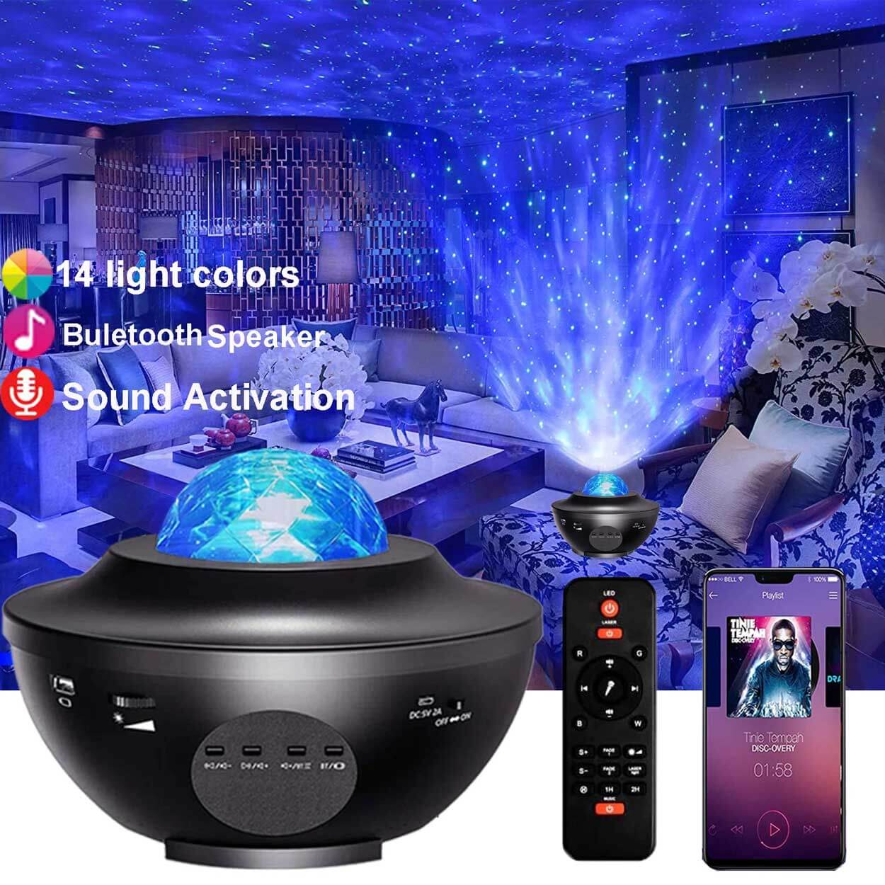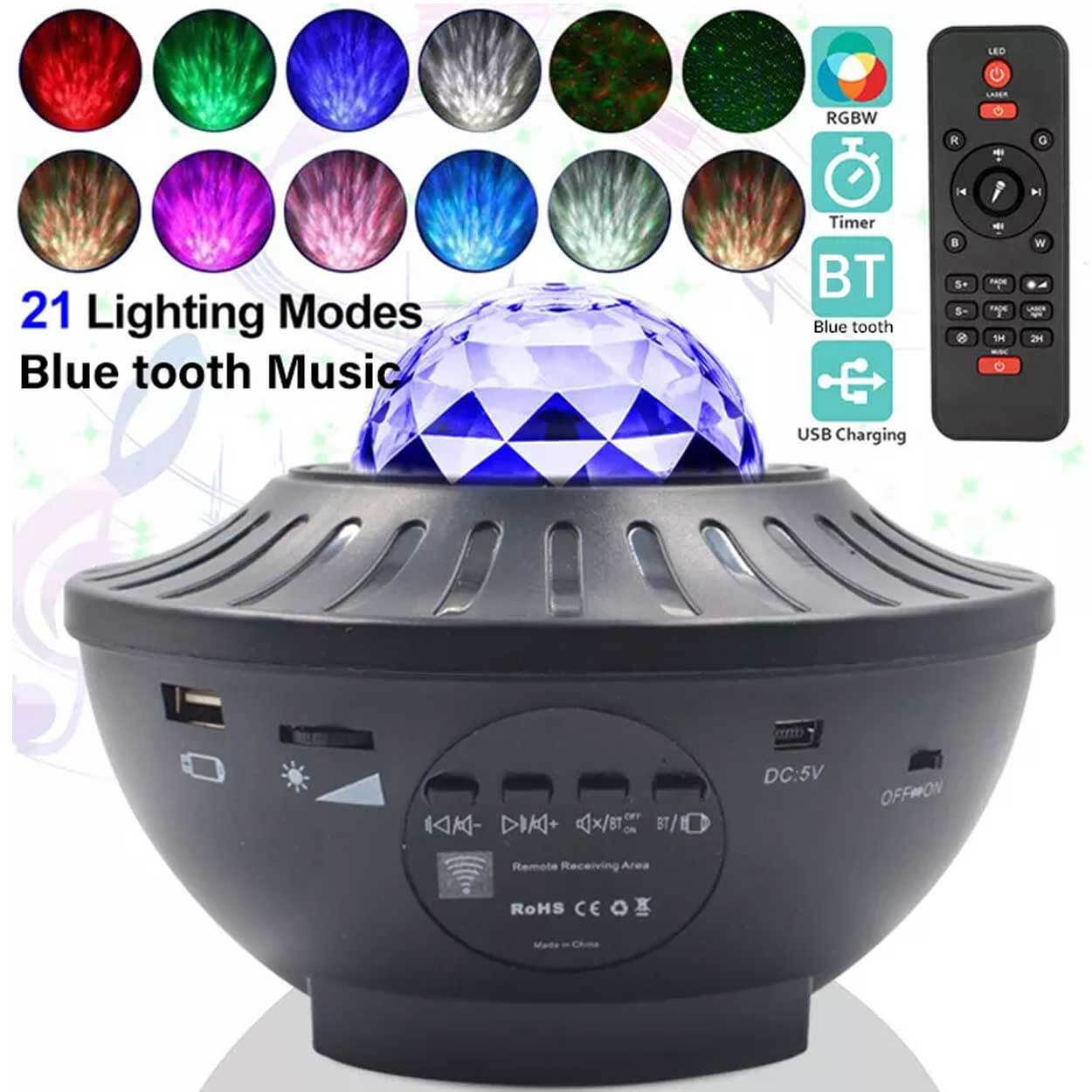 Stjärnprojektor / galaxylampa – takprojektion nattljus – bluetooth-högtalare, fjärrkontroll, USB