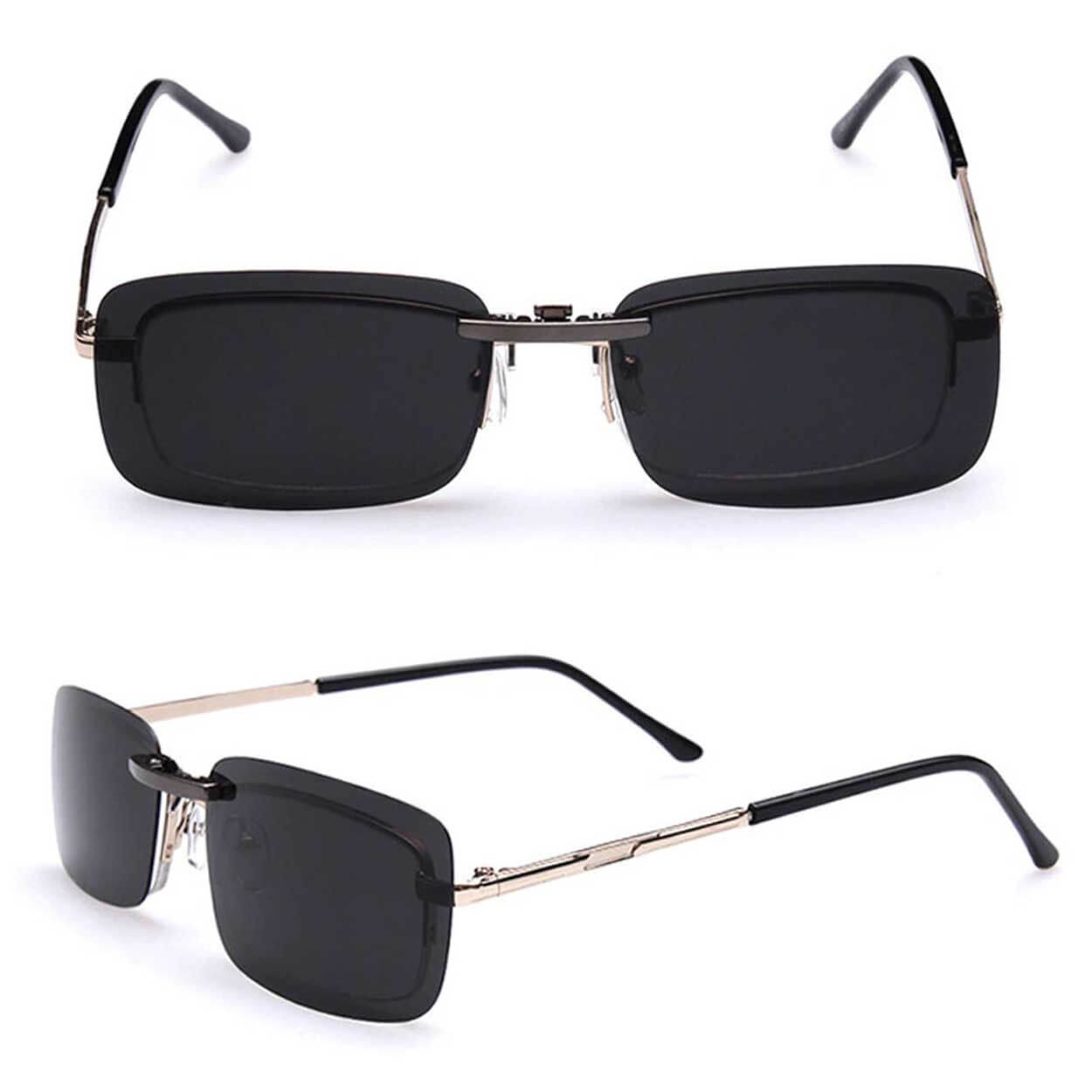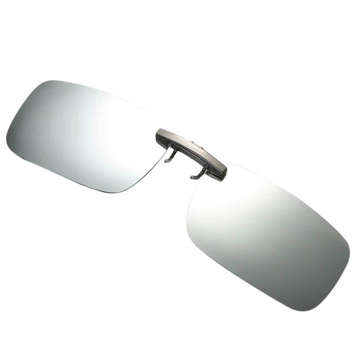Clip-on solglasögon som fästs direkt på dina vanliga glasögon med en tunn metallklämma. Konstruktionen gör det enkelt att växla mellan inomhus och starkt solljus utan att bära med sig ett extra par. Den polariserade resinlinsen minskar bländning från exempelvis väg och vatten, vilket ger en behagligare sikt vid bilkörning. UV400-skydd hjälper till att blockera både UVA- och UVB-strålning. Passformen är utformad för att fungera med de flesta glasögonmodeller.