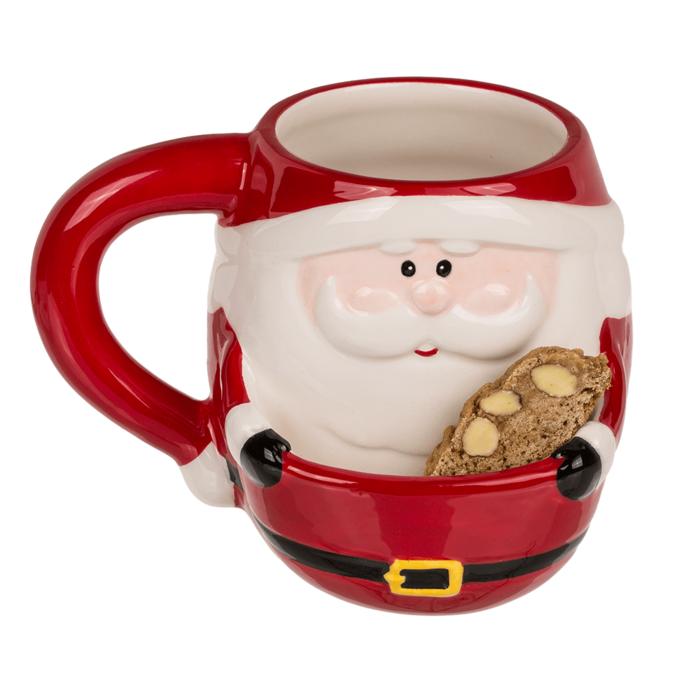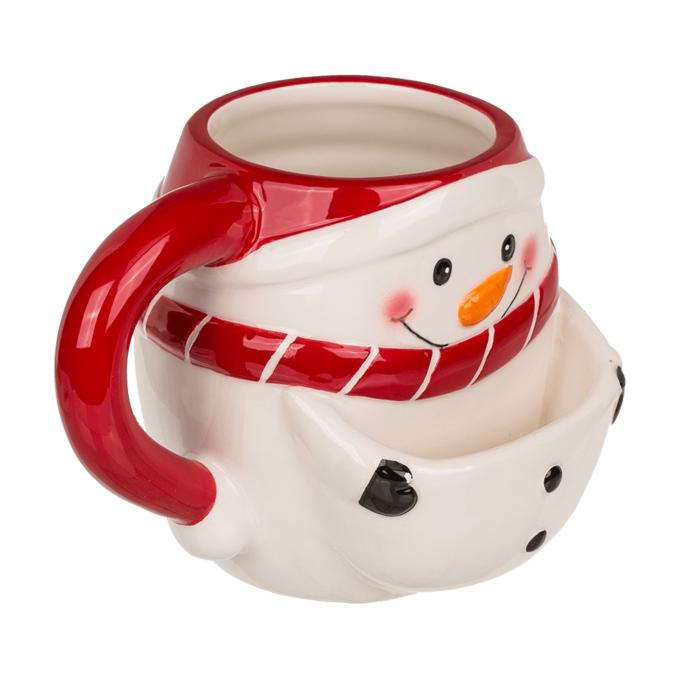 Kakmugg i keramik som kombinerar varm dryck och tilltugg i samma kopp. Muggen har ett integrerat fack på framsidan där kakor kan läggas, vilket gör serveringen smidig vid fika, filmkväll eller spelstund. Keramikmaterialet hjälper till att hålla drycken varm längre och passar för kaffe, te eller choklad. Julmotivet finns som snögubbe eller tomte och ger en tydlig säsongskänsla på bordet. Praktisk presentidé till vinterfikat.