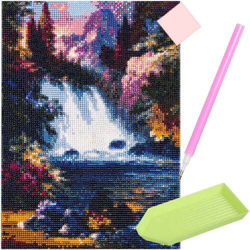 Diamantmålning med vattenfallsmotiv som ger en lugn och fokuserad pysselstund. Självhäftande canvas gör det enkelt att placera de färgade diamanterna exakt och få ett jämnt, glittrande resultat. Setet passar både nybörjare och vana skapare och kräver ingen särskild erfarenhet, bara tålamod och noggrannhet. Allt som behövs ingår: canvas, diamanter, applicator, torrt lim och behållare för smidig sortering. När motivet är klart kan det ramas in eller hängas upp som väggdekoration.