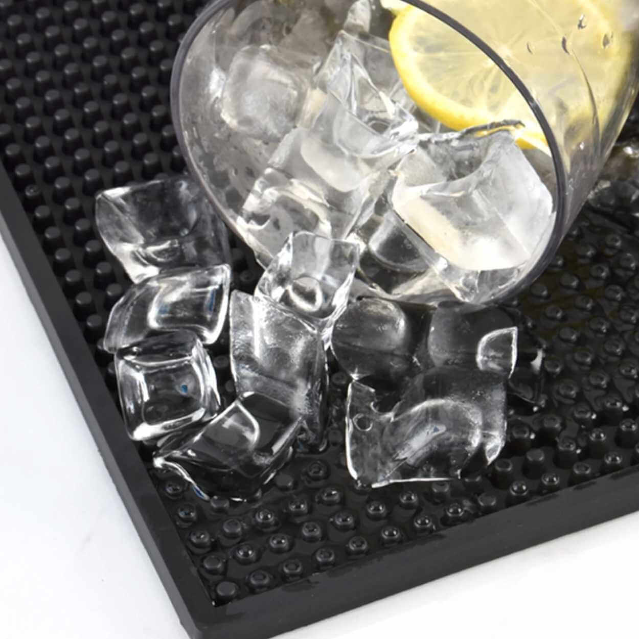 Barmatta i gummi som ger en stabil och ren arbetsyta vid drinkmixning och servering. Piggarna hjälper glas och verktyg att stå stadigt, medan diket samlar upp spill och dropp så att bardisken hålls torrare och mer ordnad. Mattan fungerar även som underlägg för använda bartillbehör eller som serveringsunderlägg. Gummimaterialet är tåligt för regelbunden användning och gör mattan enkel att skölja av. Rengörs smidigt för hand eller i diskmaskin.