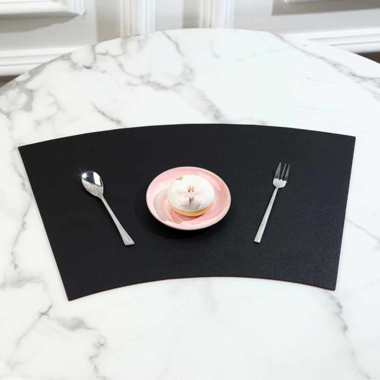 Bordstablett i konstläder som skyddar bordet mot repor, fläckar och spill vid måltider och servering. Den smidiga ytan är enkel att torka av efter användning och ger en stabil plats för tallrik, glas och bestick. Den bågformade designen ger en tydlig avgränsning på bordet och passar både till vardagsdukning och när du vill hålla bordsskivan extra skyddad. Storleken 43 x 30 cm fungerar på de flesta matbord och bordsytor.
