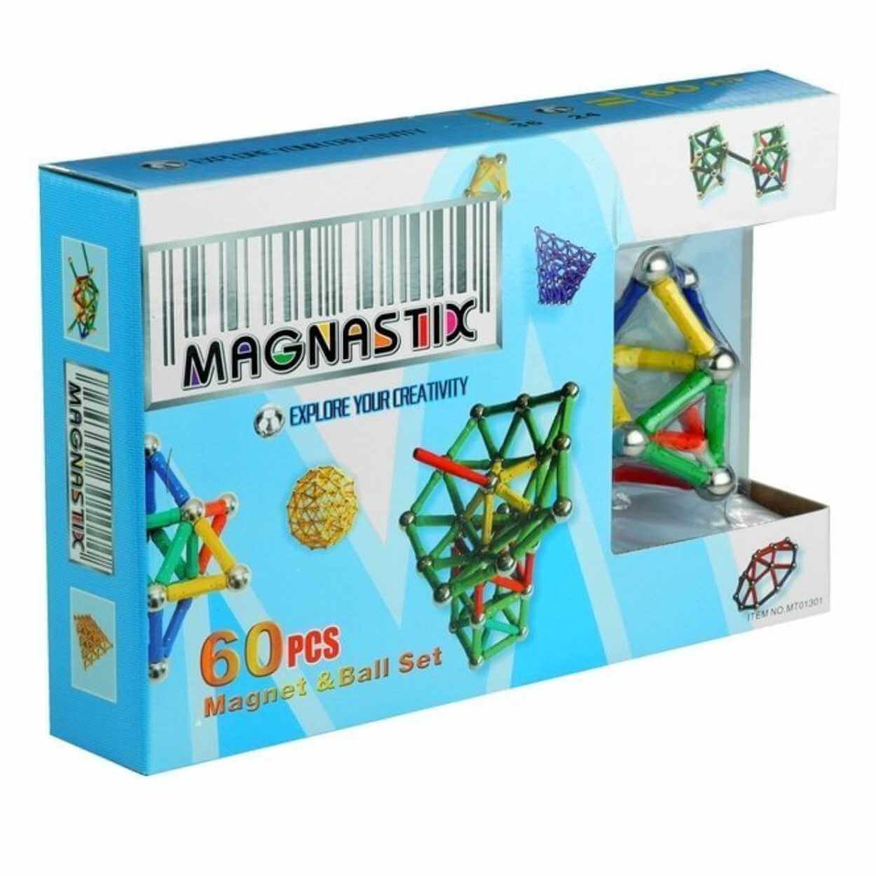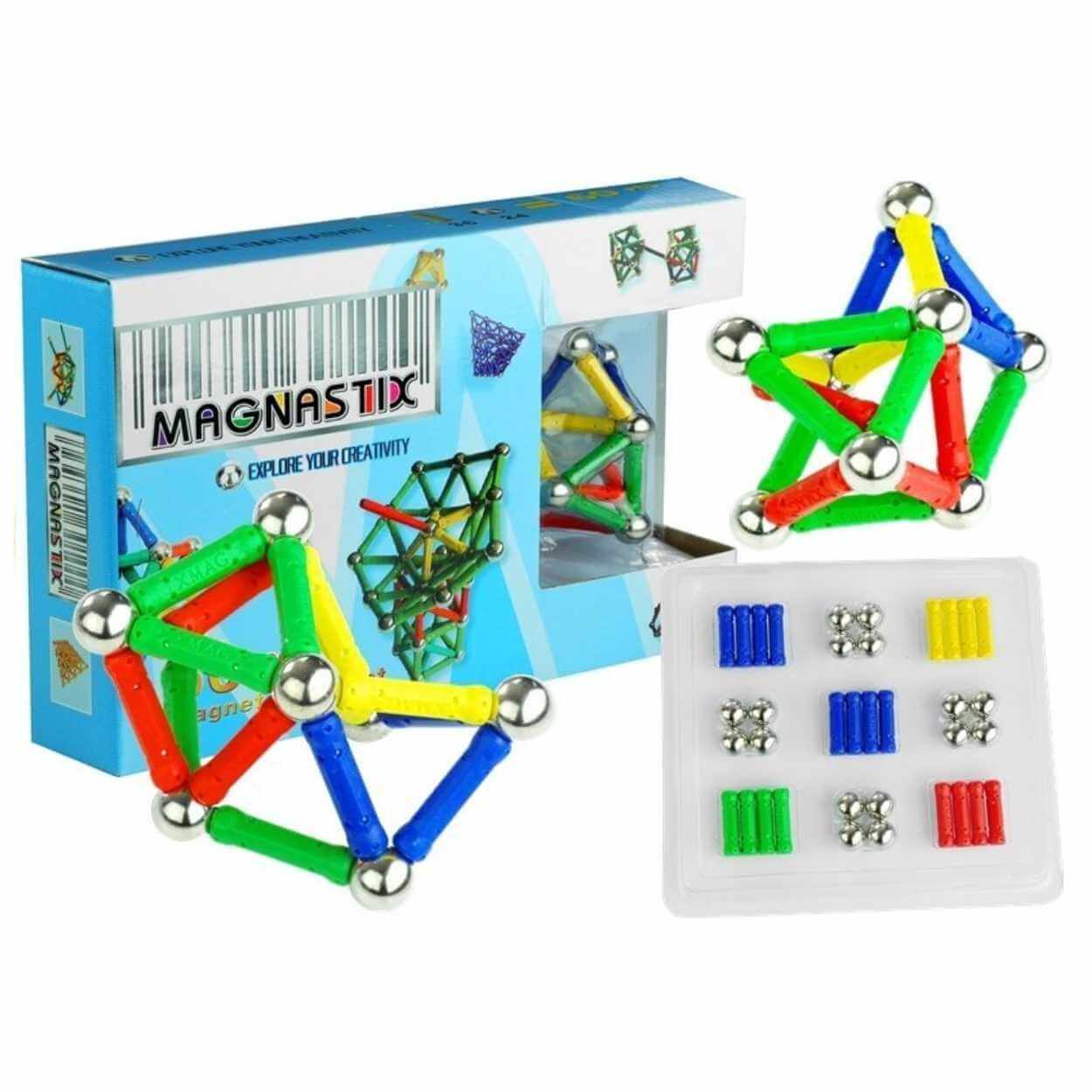 Magnetiska byggstavar och magnetbollar som gör det enkelt att skapa allt från grundformer till mer avancerade 3D-konstruktioner. Delarna kopplas ihop snabbt och stabilt, vilket ger ett smidigt byggflöde och tydlig struktur i modellerna. Setet innehåller 36 magnetstavar och 24 magnetbollar, totalt 60 delar. Leksaken passar för kreativt byggande och kan användas för att utforska enkla principer inom geometri och konstruktion. Tillverkad i giftfria material och uppfyller EN 71.