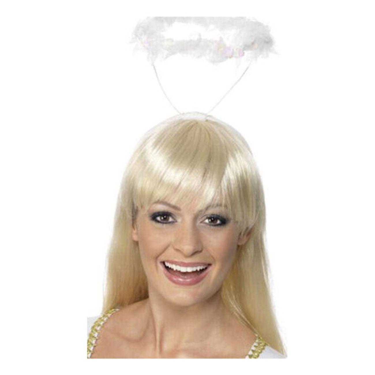 Ängelgloria i äkta fjädrar som snabbt ger en tydlig ängel-look till maskerad, teater och temafest. Glorian är fäst på ett diadem som gör den enkel att ta på och bekväm att bära under längre stunder. One size passar de flesta, både barn och vuxna, och fungerar lika bra som del av en komplett änglakostym som en diskret detalj till en enklare outfit. En lätt och praktisk accessoar när du vill skapa rätt uttryck utan krångel.