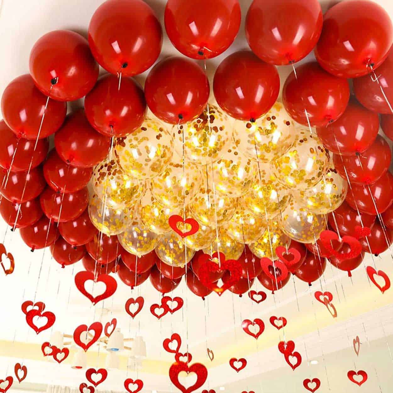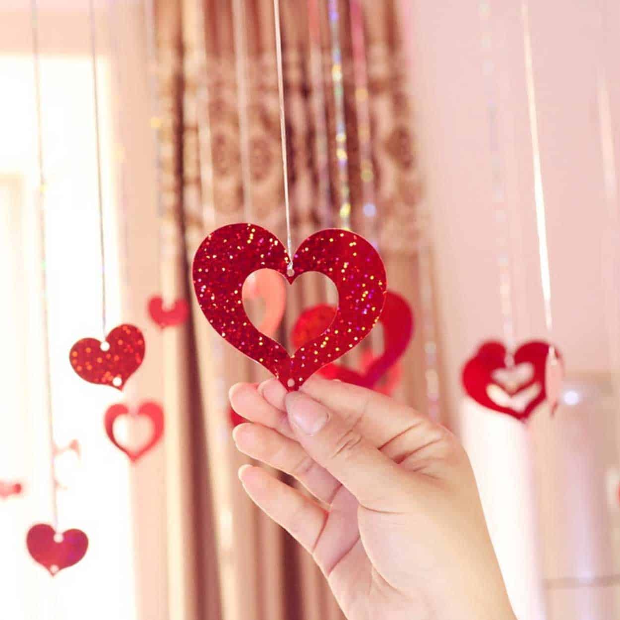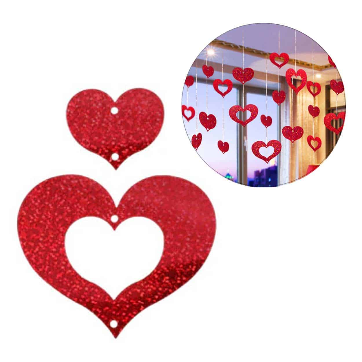 Glitterdraperi / festdraperi – dekoration ballongarrangemang – ca 64 hjärtan