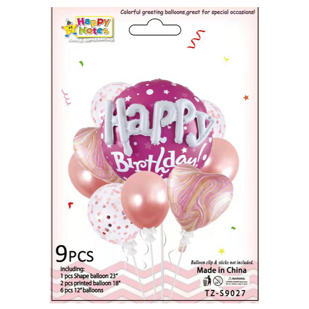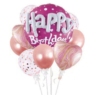 Ballongset för födelsedag som gör det enkelt att skapa en tydlig och festlig dekoration. Paketet innehåller en stor ballong med happy birthday-tryck, två hjärtformade ballonger samt en mix av klassiska ballonger och konfettiballonger. Kombinationen ger både volym och en mer livfull effekt i rummet. Ballongband ingår för smidig upphängning eller för att samla ballongerna i ett arrangemang. Passar som dekoration vid presentbord, entré eller fotohörna.