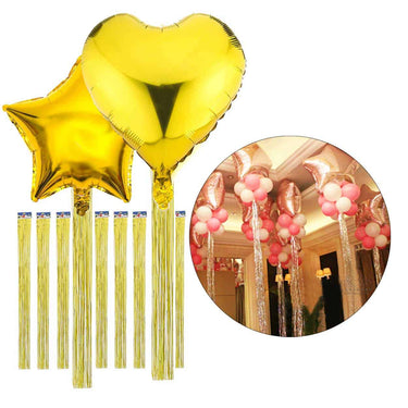 Glittriga ballongsvansar som ger ballonger mer volym och ett tydligt dekorativt uttryck. Svansarna används som ballongdraperi och fästs enkelt i ballongens knut för att skapa ett mer genomarbetat ballongarrangemang. Passar lika bra till ballongbuketter som till större dekorationer där du vill få mer rörelse och effekt utan att bygga på med fler ballonger. Varje svans är lång och följsam, vilket gör att dekorationen får liv när den hänger fritt.