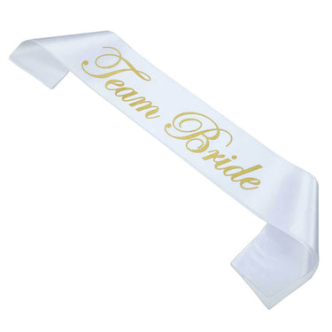 Ordensband med texten Team Bride som gör det enkelt att markera gruppen under möhippa och fest. Bandet bärs över axeln och ger en tydlig igenkänning i miljöer där många rör sig samtidigt. Passar som enkel dekoration och som praktisk detalj när ni vill hålla ihop sällskapet. Lätt att ta med och snabbt att använda utan krånglig montering.