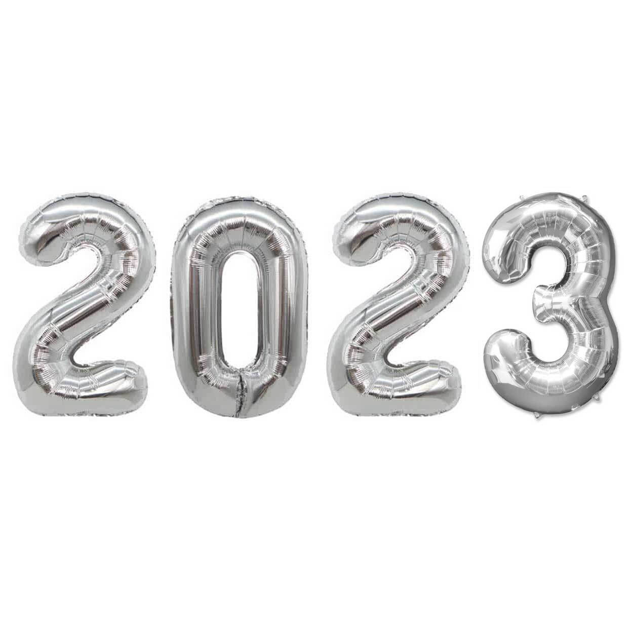 Sifferballonger 2023 i folie för tydlig nyårsdekoration. Ballongerna har självförslutande ventil som gör uppblåsningen enkel och minskar risken för läckage. De kan fyllas med luft eller helium beroende på om de ska hänga, fästas mot vägg eller sväva. Öglor gör det smidigt att fästa band eller snöre för upphängning. Foliekonstruktionen är robust och hjälper ballongerna att behålla formen under firandet. Passar för nyårsfest, fotohörna och entrédekoration.