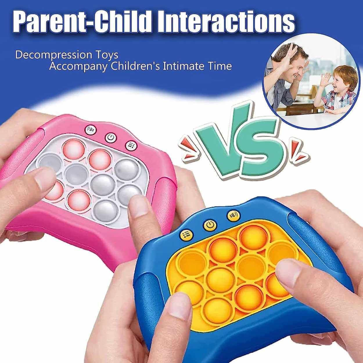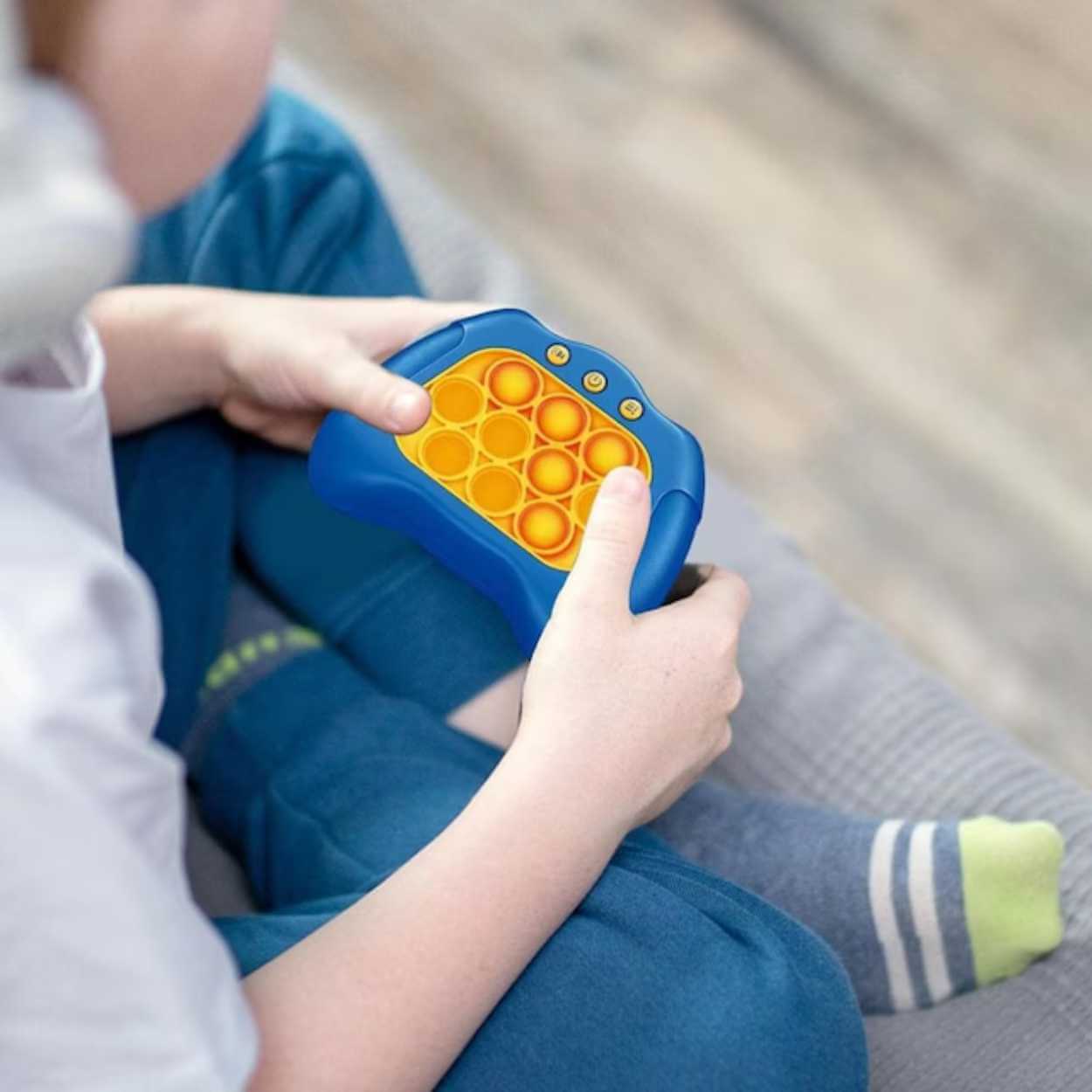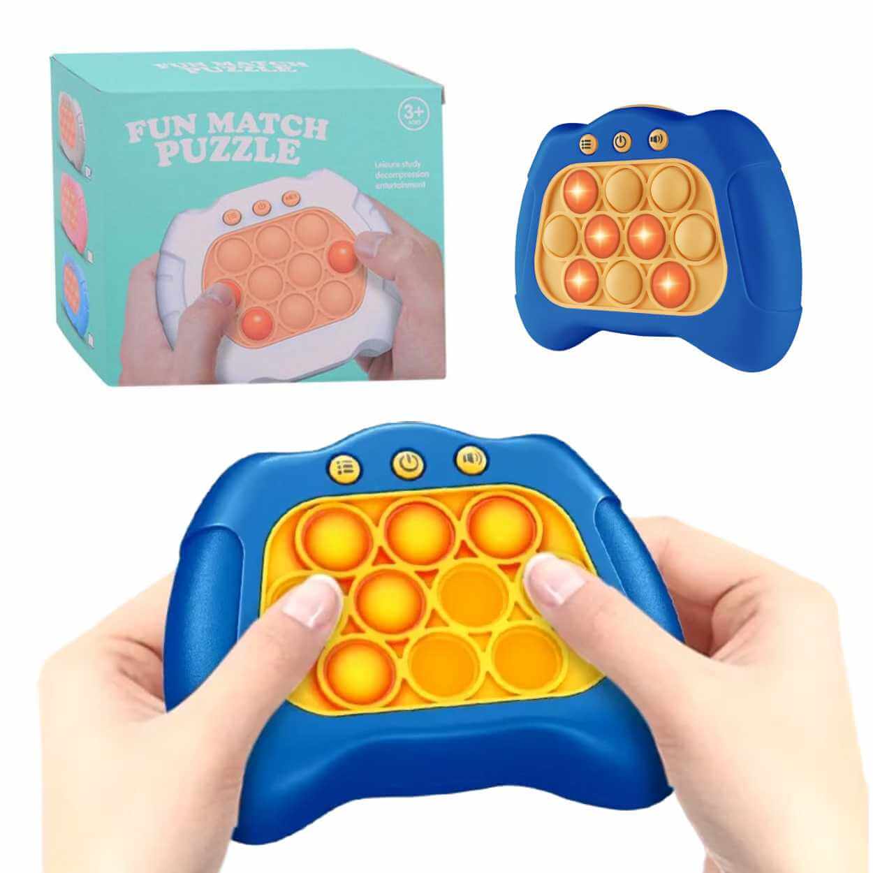 Pop it spel är ett interaktivt fidgetspel i handhållet format som kombinerar tryckkänsla med ljusbaserade utmaningar. De 10 bubblorna lyser i olika mönster och målet är att trycka i rätt ordning och takt. Välj mellan flera lägen, inklusive minnesläge för sekvensträning, poängläge för snabbare reaktionsutmaningar och flerspelarläge för turbaserad match. Konstruktionen i ABS-plast och gummi ger en tålig känsla för vardagsanvändning. Drivs av 3 AAA-batterier (ingår ej) och är enkel att ta med.