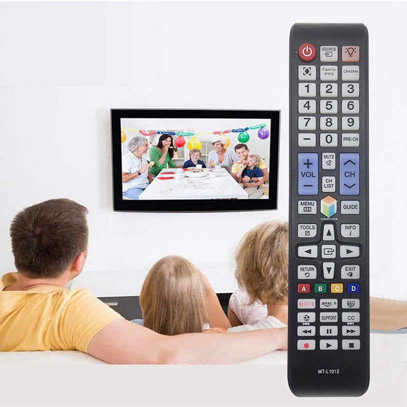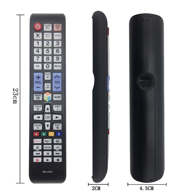 Universell fjärrkontroll för Samsung Smart TV som fungerar via infraröd signal och kommer igång direkt utan parning. Snabbknappar ger direktåtkomst till Netflix och Amazon, vilket gör det enkelt att byta från vanlig TV till streaming. Bakgrundsbelysta knappar hjälper när rummet är mörkt och gör att rätt knapp hittas snabbare. Konstruktionen i ABS-plast ger en tålig fjärr som passar för daglig användning. Drivs av två AAA-batterier som sätts i vid start.