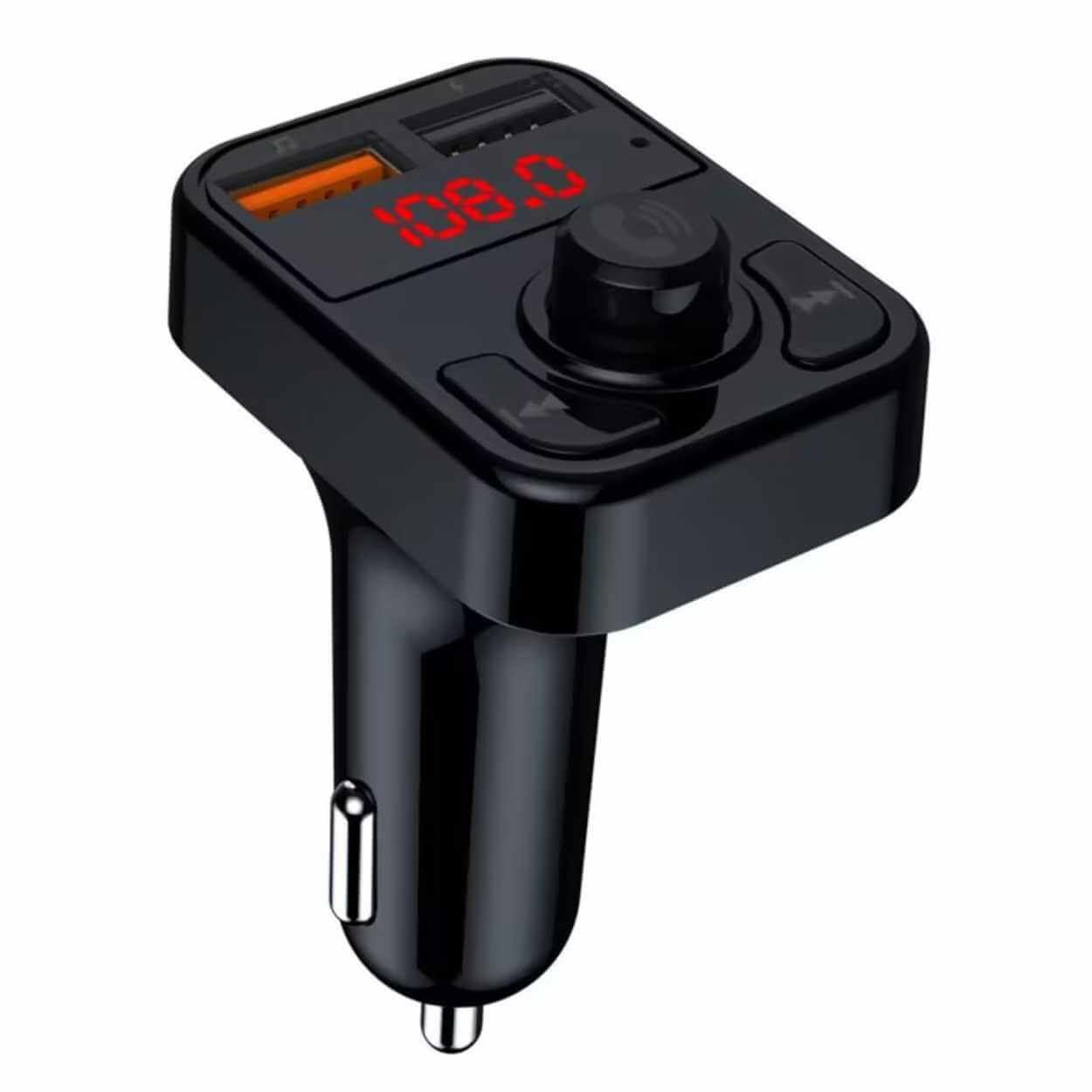FM-sändare / Bluetooth billaddare – musikstreaming handsfree – 2x USB, 87,5–108 MHz