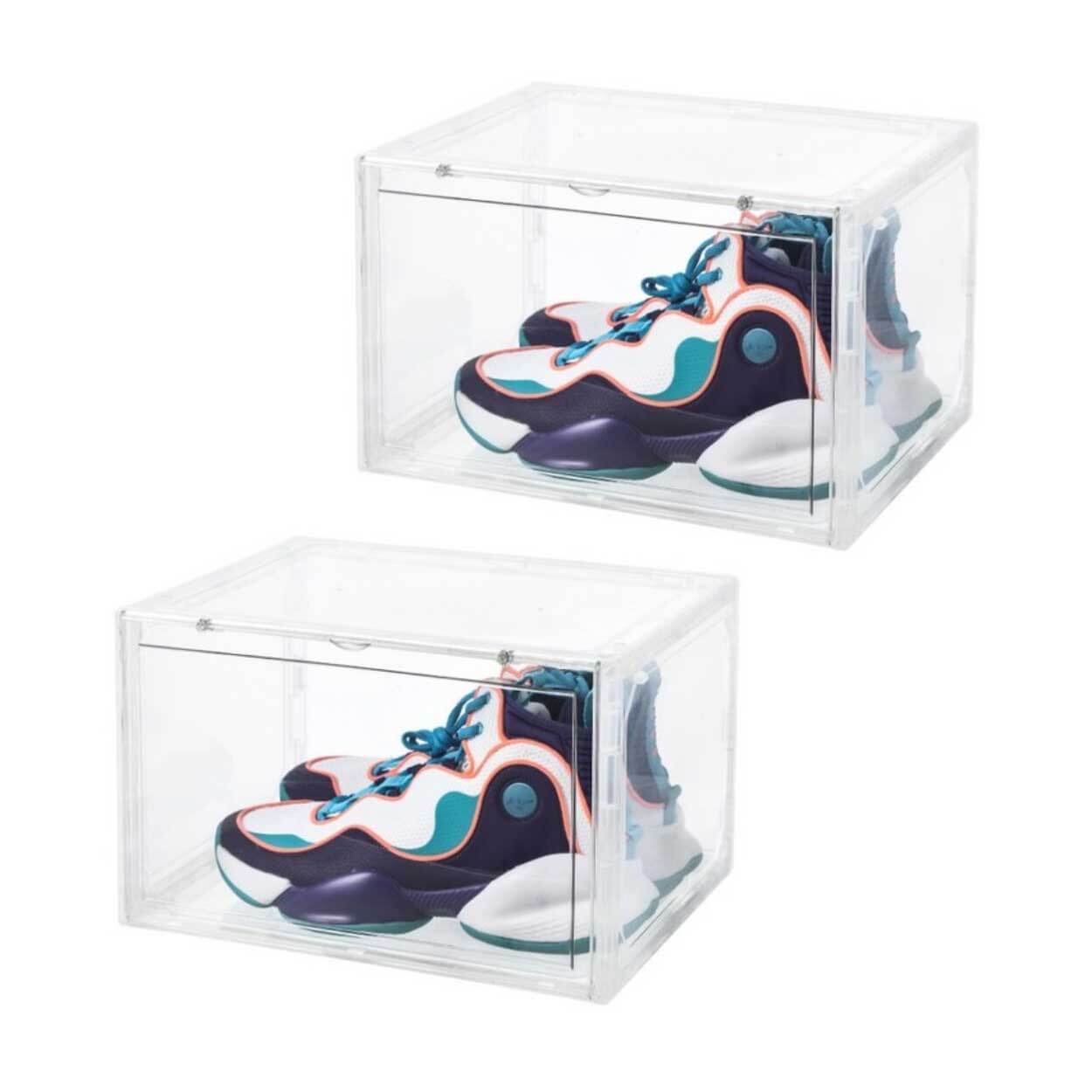 Genomskinlig skolåda som gör det enkelt att organisera skor och sneakers utan att du tappar överblicken. Lådan öppnas i sidled via en lucka med magnetlås, vilket ger smidig åtkomst även när flera lådor står staplade. Den stabila konstruktionen gör att du kan kombinera flera lådor och bygga en hyllliknande lösning, samtidigt som ytan ovanpå kan användas för extra förvaring. Passar även för annan småförvaring i hall, garderob eller förråd.