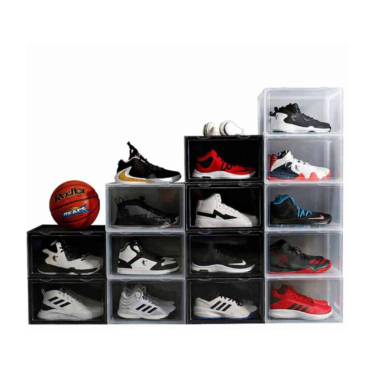 Skolåda / skoförvaring – stapelbar förvaring – magnetlås, transparent plast