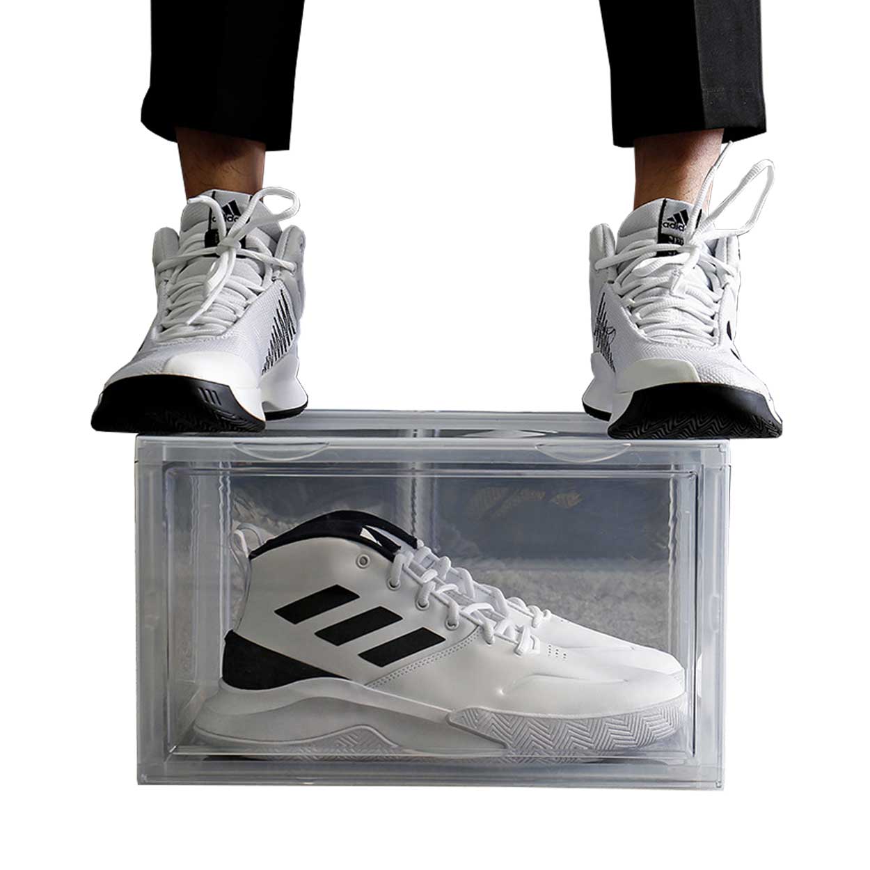 Genomskinlig skolåda som ger ordnad och lättöverskådlig skoförvaring för sneakers och andra skor. Lådan kan staplas för att skapa en stabil hyllstruktur, vilket gör det enkelt att bygga ut förvaringen efter behov. Sidoluckan ger smidig åtkomst även när flera lådor står på varandra. Magnetlåset håller luckan stängd och bidrar till en prydlig förvaring som passar i garderob, hall eller klädkammare.