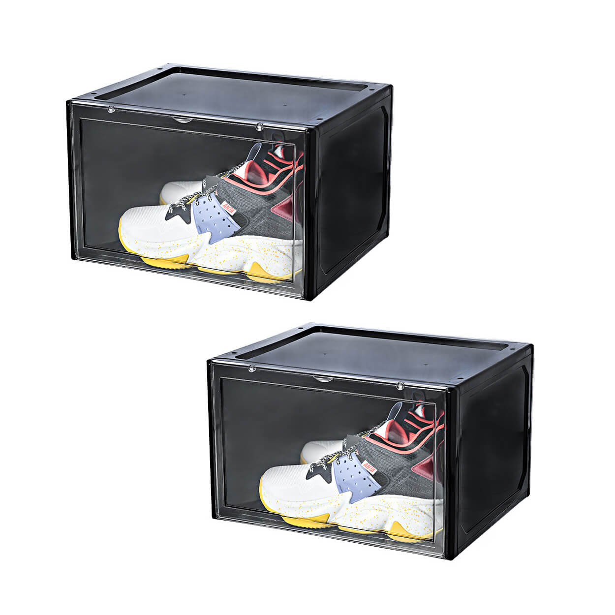 Skolåda / skoförvaring – stapelbar förvaring – transparent front, magnetlucka