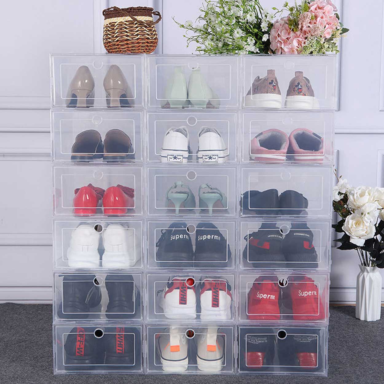 Genomskinlig skolåda Frontlucka Stapelbar förvaring För mindre skor Dammreducerande skydd