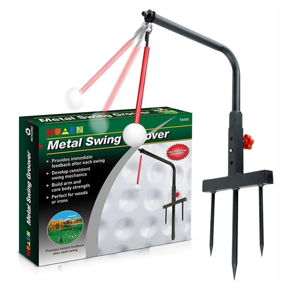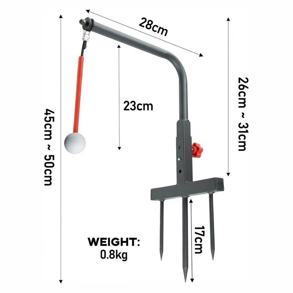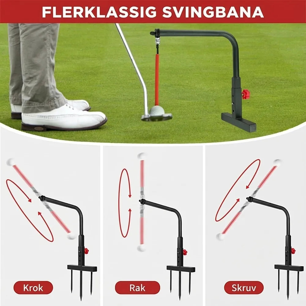 Svingtränare golf / svingguide – svingbana teknikträning – metallställ, markspett, pendelarm