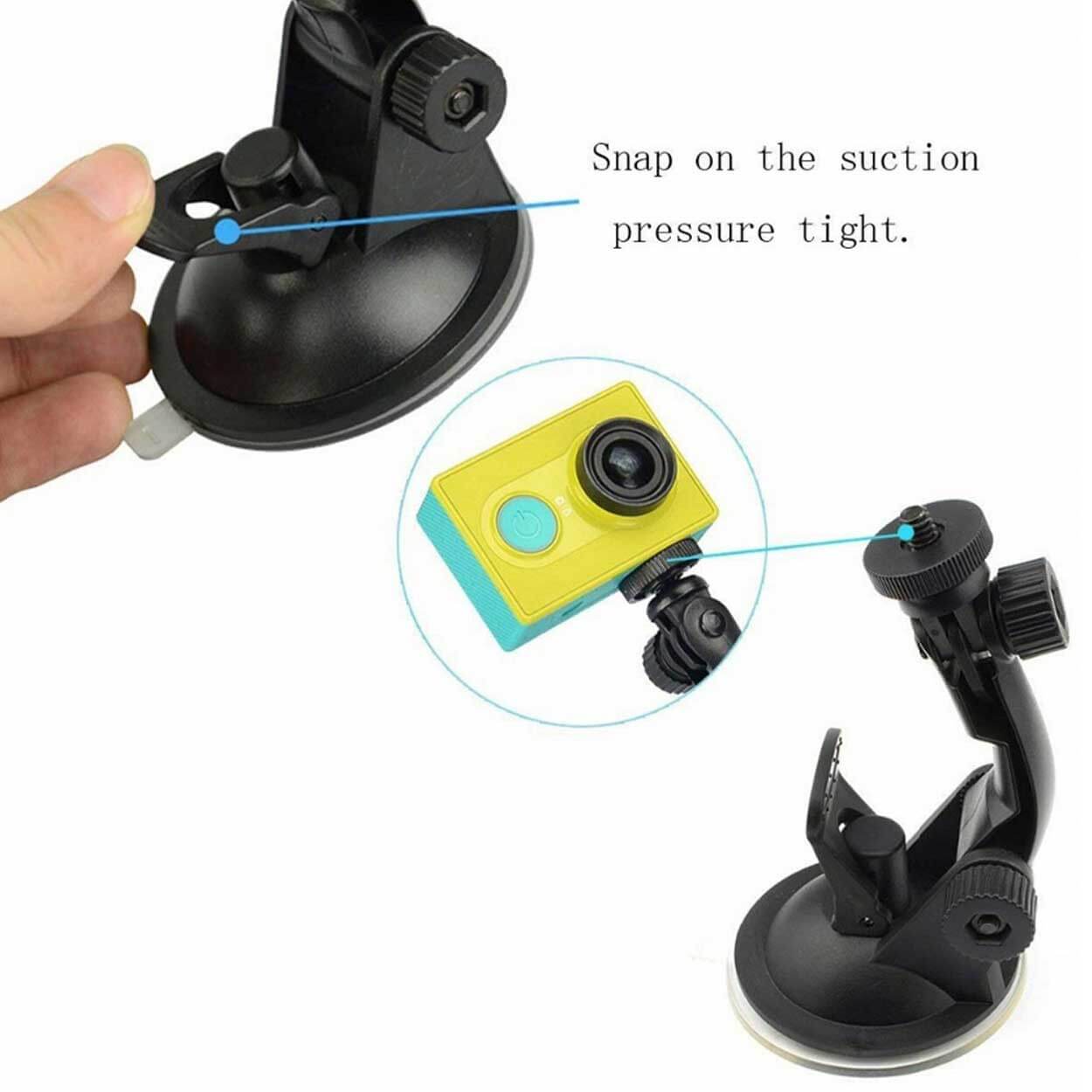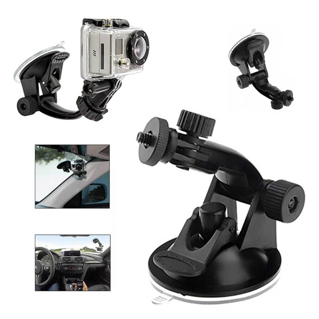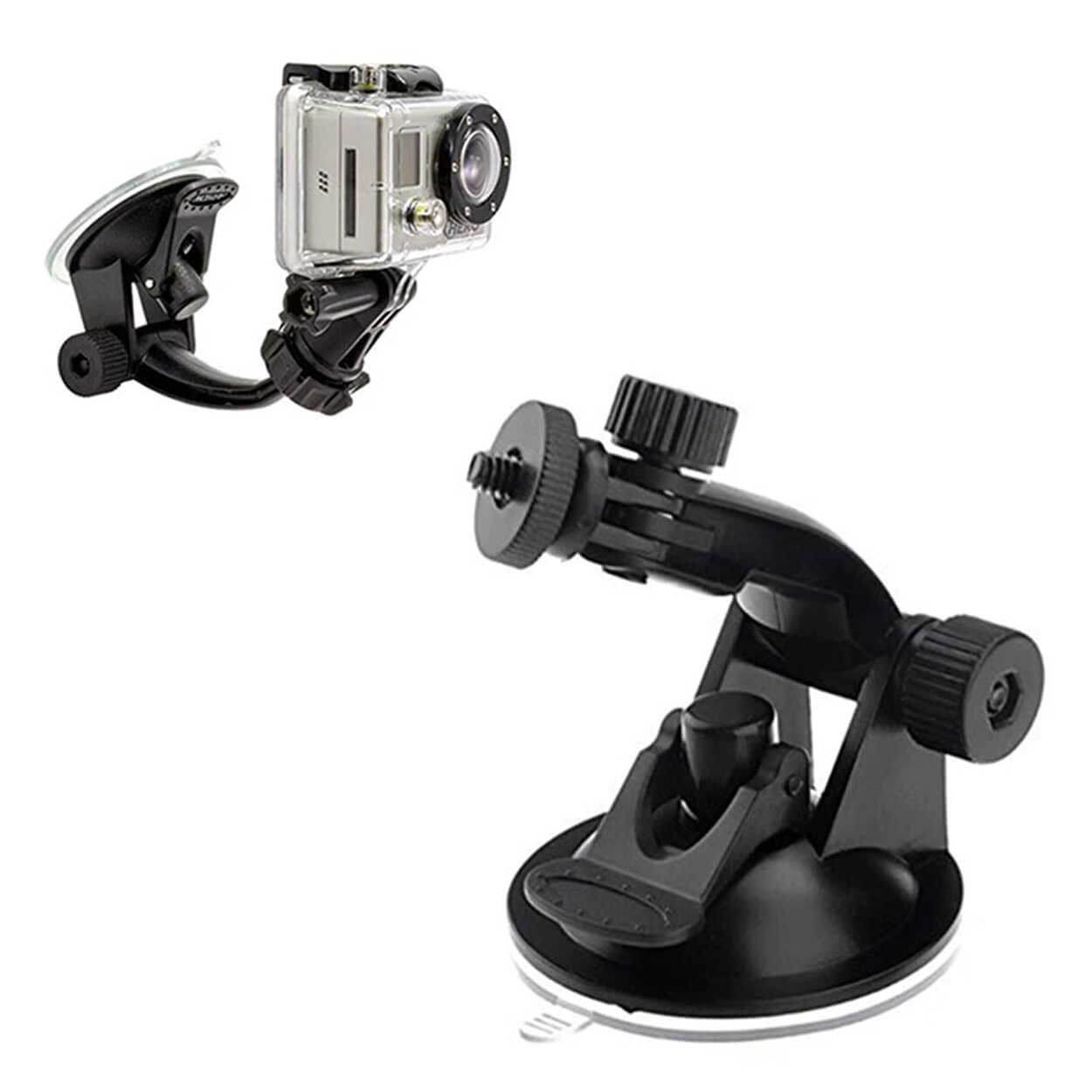 Sugproppsfäste för kamera som gör det enkelt att montera en actionkamera eller annan kamera på släta ytor som bilruta och glas. Fästet har universellt 1/4 tum gänga och kan användas med kameror som har standardgänga eller via adapter för actionkameror. Konstruktionen ger en stabil monteringspunkt för inspelning under färd eller vid stillastående. Monteras och tas bort snabbt utan verktyg, vilket gör det smidigt att flytta mellan olika positioner.