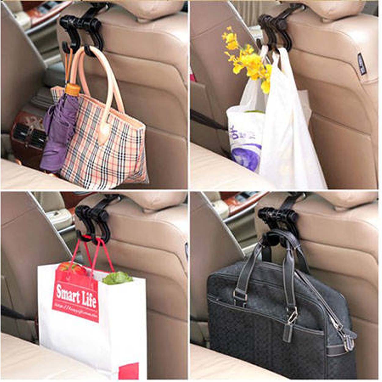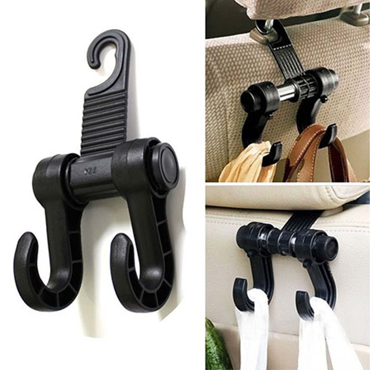 Krokar bilnackstöd / bilkrokar – upphängning väskor kassar – 2 krokar
