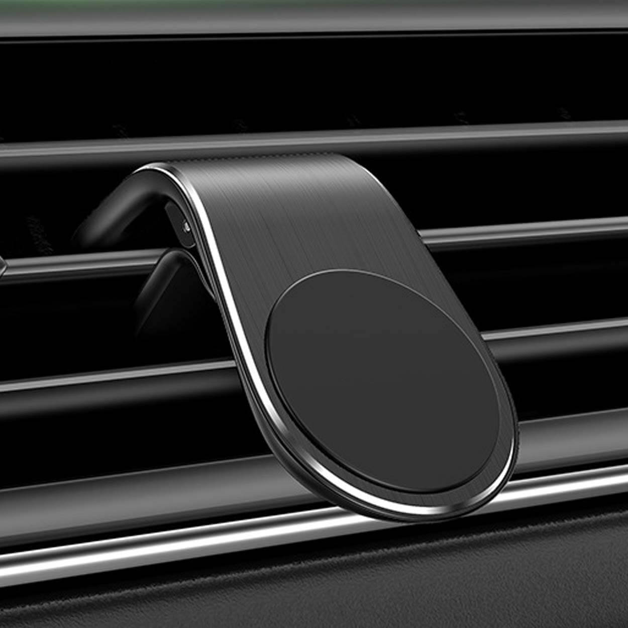 Magnetisk mobilhållare för bil som fästs i ventilationsgallret med ett klämfäste. Monteringen går snabbt och kräver inga verktyg. En magnetplatta ingår och kan fästas på telefonen eller på mobilskalet för att ge ett stabilt magnetfäste. Hållaren passar de flesta smartphones och fungerar även med föremål som redan är magnetiska. Praktisk för handsfree-navigering och samtal när du vill ha mobilen lättåtkomlig utan att den ligger löst i bilen.