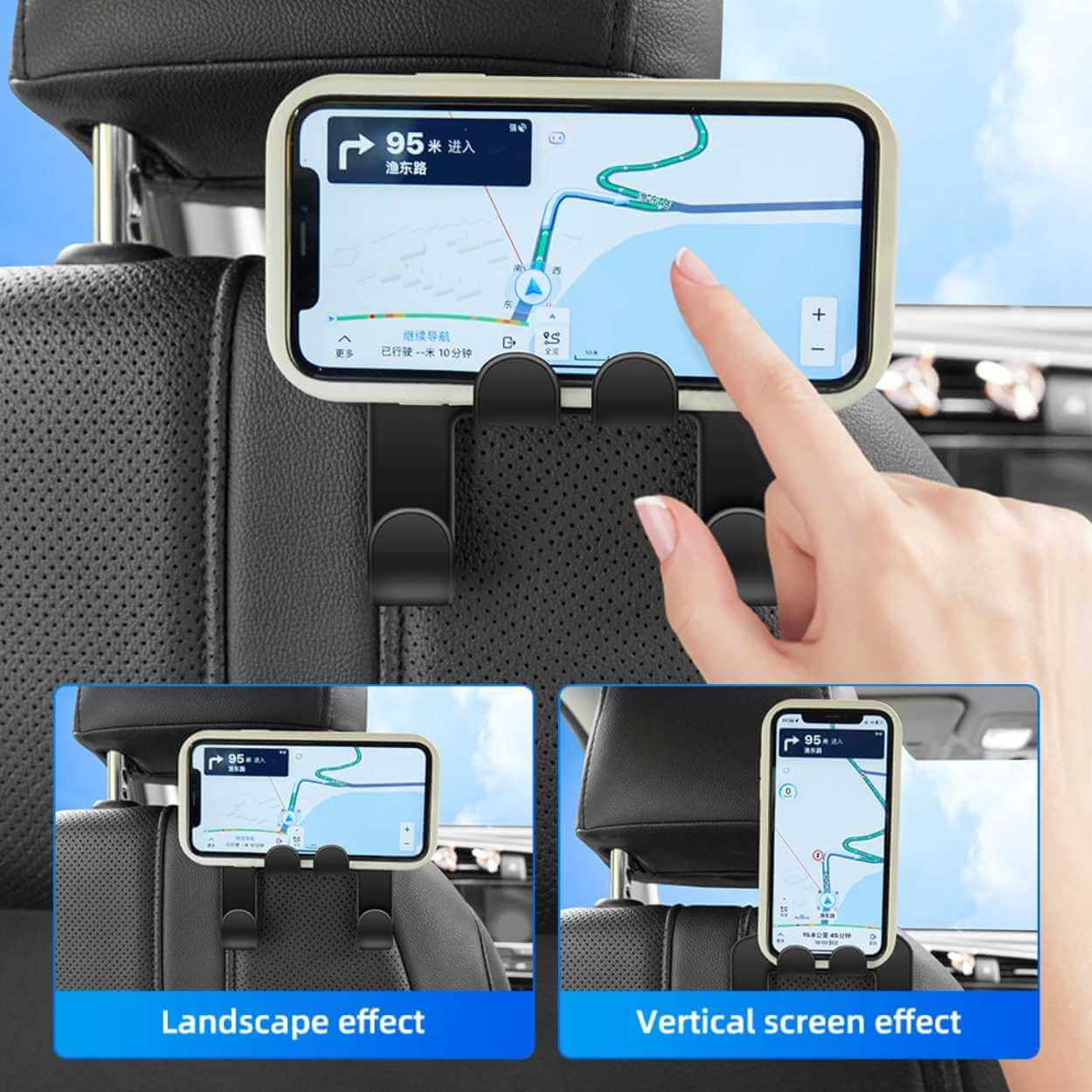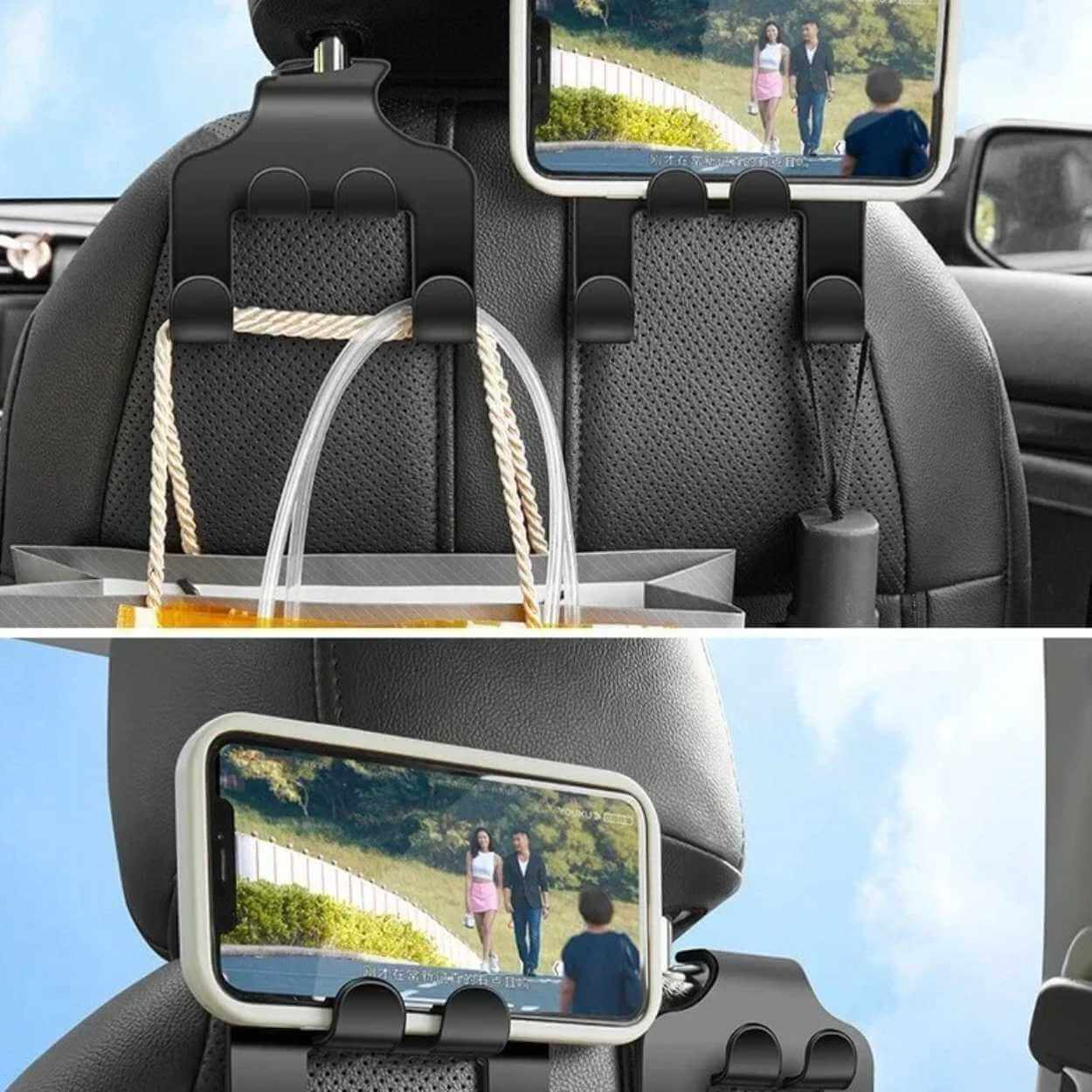 Nackstödskrok / mobilhållare – bilorganisering – dubbelkrok, mobilstöd
