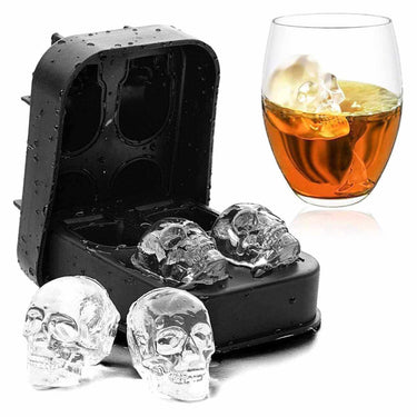Isform i silikon som skapar dödskalleformade isbitar för drinkar och servering. Formen har fyra fack och är utformad för att ge tydliga detaljer som ögon, näsa och tänder. Fyll på vatten genom hålen i toppen och ställ i frysen. När isen är klar böjs silikonet lätt så att isbitarna släpper smidigt utan att spricka. Samma form kan även användas för choklad eller gelé när du vill göra små, formgjutna portioner med ett mer effektfullt uttryck.