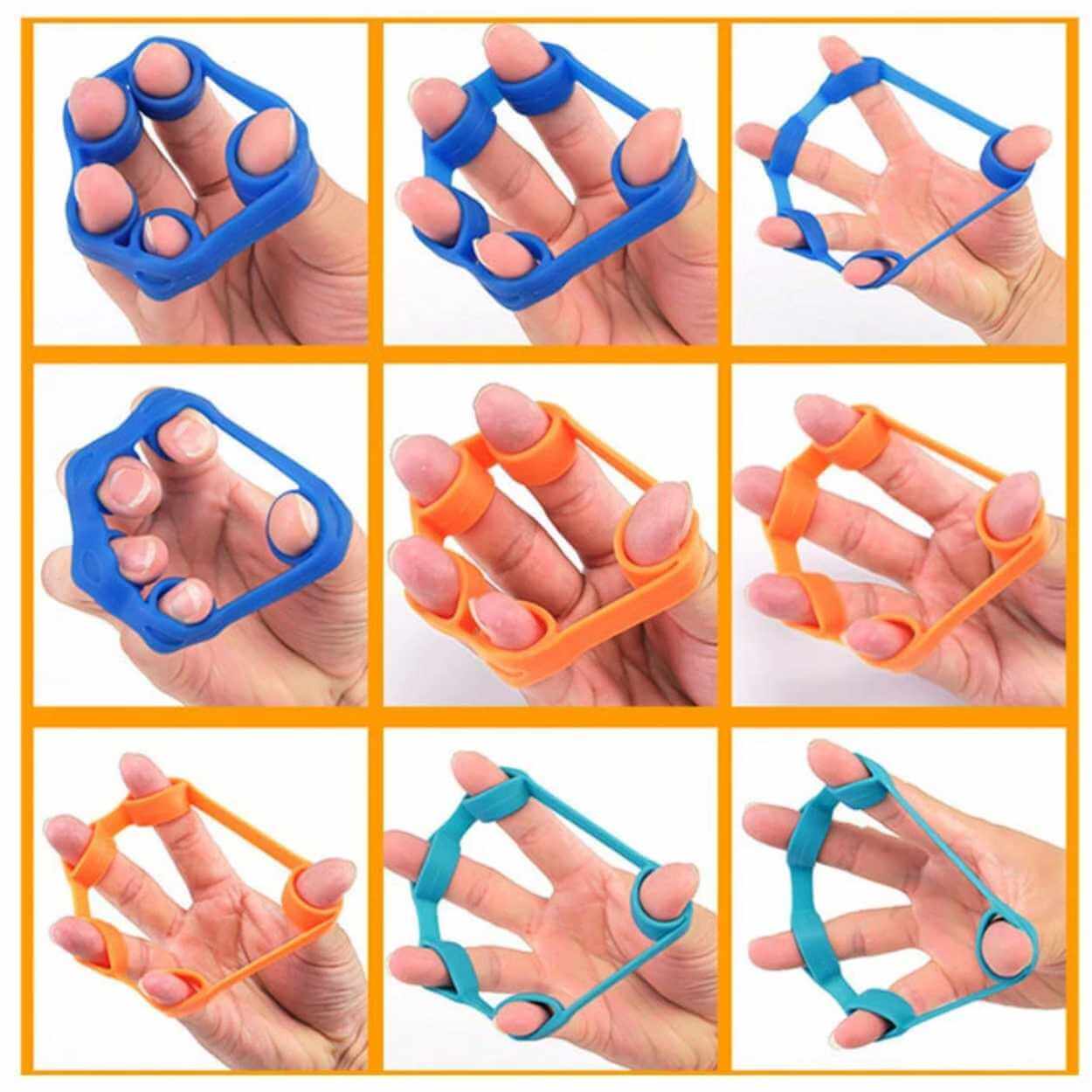 Fingertränare i silikon som hjälper till att stärka fingrar, grepp, handled och underarm. Fingrarna placeras i ringarna och sträcks ut för att ge ett jämnt motstånd som tränar alla fem fingrar samtidigt. Motståndet på 3 kg passar för skonsam uppbyggnad och kan fungera bra vid rehabilitering eller som instegsnivå. Det elastiska silikonmaterialet är tåligt och ger en kontrollerad rörelse. Det kompakta formatet gör den enkel att använda vid skrivbordet, under pauser eller när du vill få in korta träningspass.