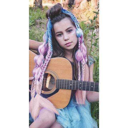 Syntetiska glitterflätor som ger en tydlig färg- och glittrande effekt utan att du behöver färga eller förändra ditt eget hår permanent. Flätorna sätts i vid behov och tas ur lika enkelt, vilket gör dem praktiska för festival, karneval, temafest och andra utklädnadstillfällen. Den lätta syntetfibern är bekväm att bära under längre tid och känns skonsam mot hår och hårbotten. Materialet är även tåligt mot sol och väder, så frisyren håller formen vid användning både inomhus och utomhus.