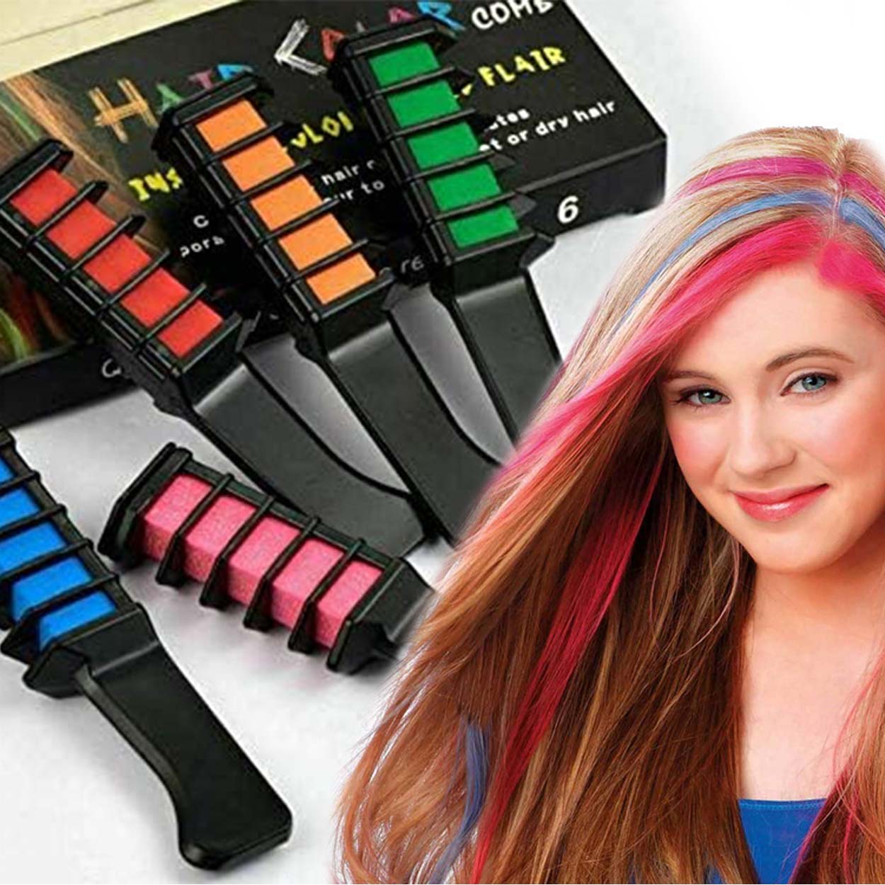 6 hårkritor Temporär hårfärg Tvättas ur Snabb applicering
