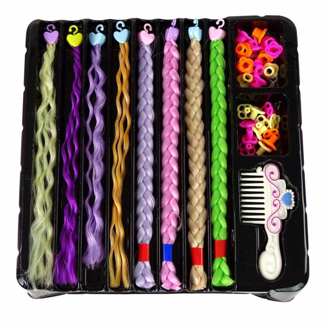 DIY hårsmycken 8 flätor ingår Kam för sektioner Pärlor i mix CE EN71 3+