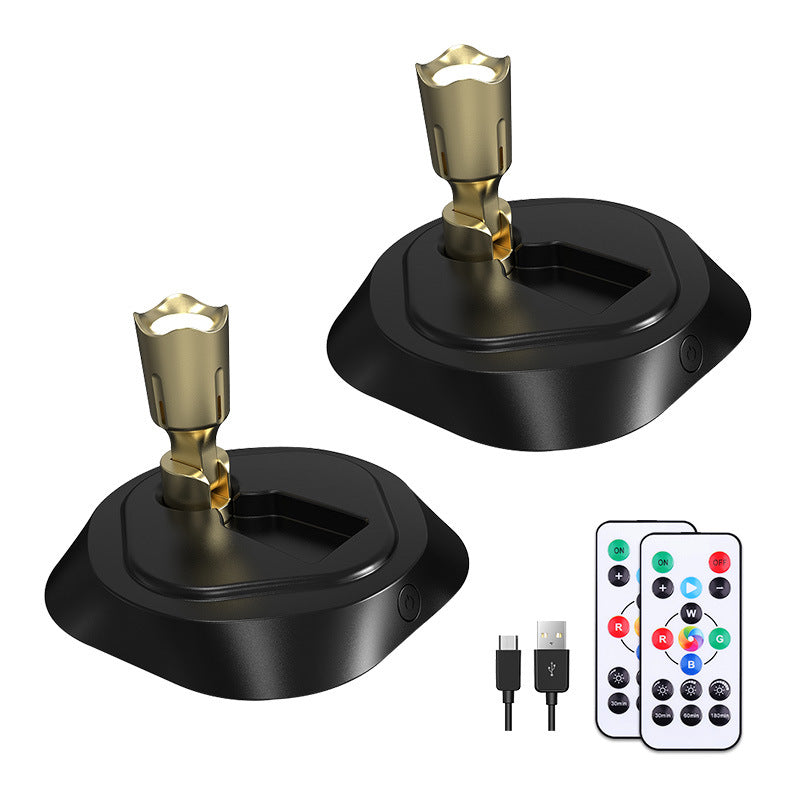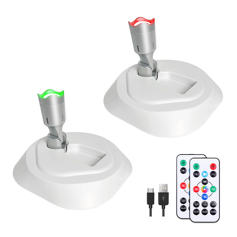 RGBW-spotlampa för riktbar accentbelysning som lyfter fram tavlor, hyllor och detaljer. Lampan roterar 360° och kan tiltas 90° för att styra ljuset exakt. Fjärrkontrollen ger snabb åtkomst till 16 RGB-färger, vitt ljus på 6000 K och dimring för rätt nivå. Timer på 30, 60 eller 180 minuter stänger av automatiskt. Batteridrift gör monteringen trådlös, och fäste kan göras med skruv eller självhäftande tejp. Effekt på 2 W ger låg energiförbrukning och lång livslängd.