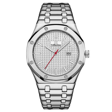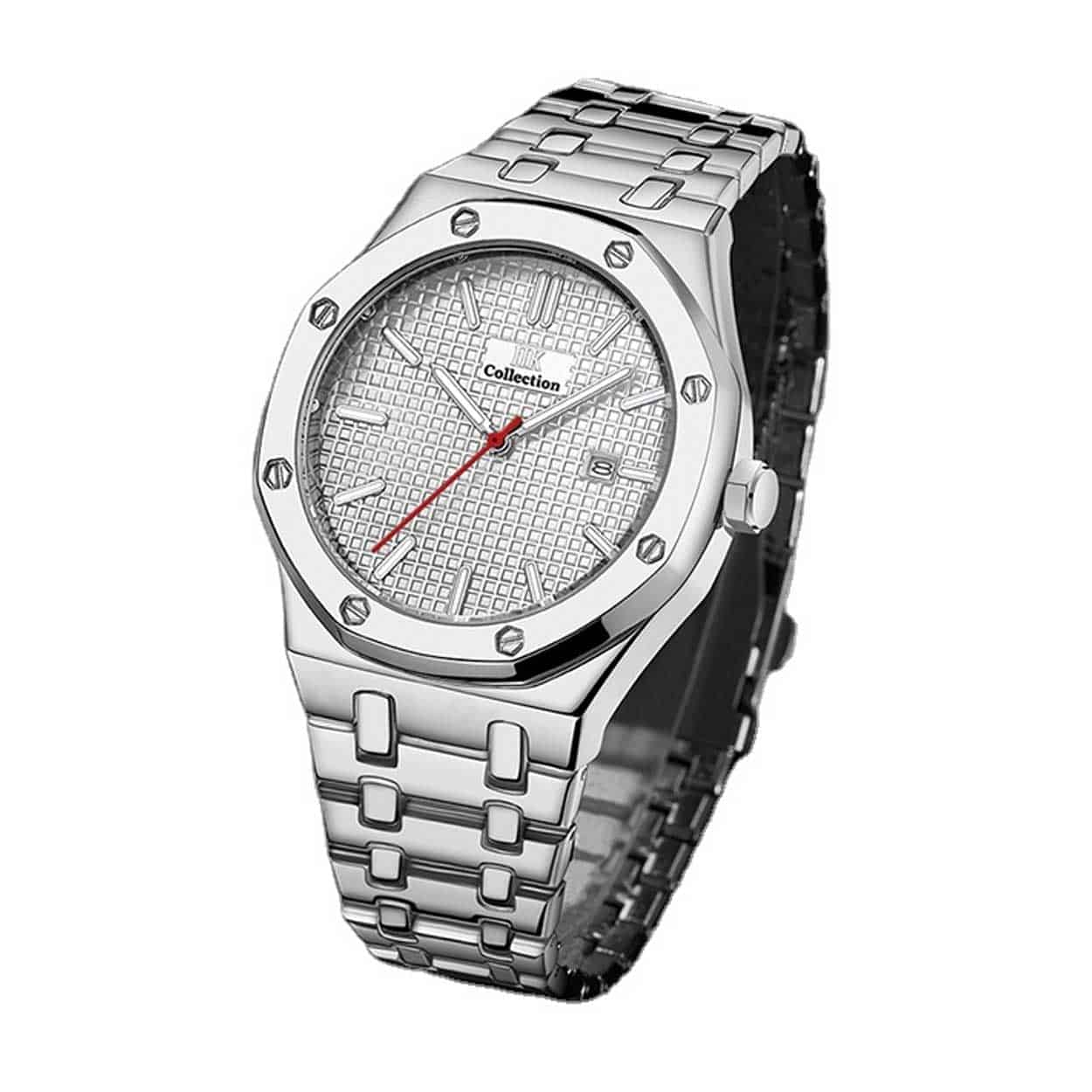 Herrklocka med quartzurverk och datumvisare för enkel vardagsanvändning. Boetten har mineralglas som skyddar urtavlan mot vardagliga repor, och metallarmbandet ger en stabil känsla på handleden. Vattenskydd 3 ATM gör att klockan klarar regn och stänk vid normal användning. Formatet med 43 mm urtavla och 11 mm tjocklek ger en tydlig avläsning utan att kännas klumpig. Passar som en praktisk klocka för arbete, fritid och resor.