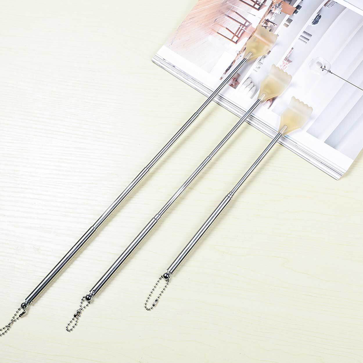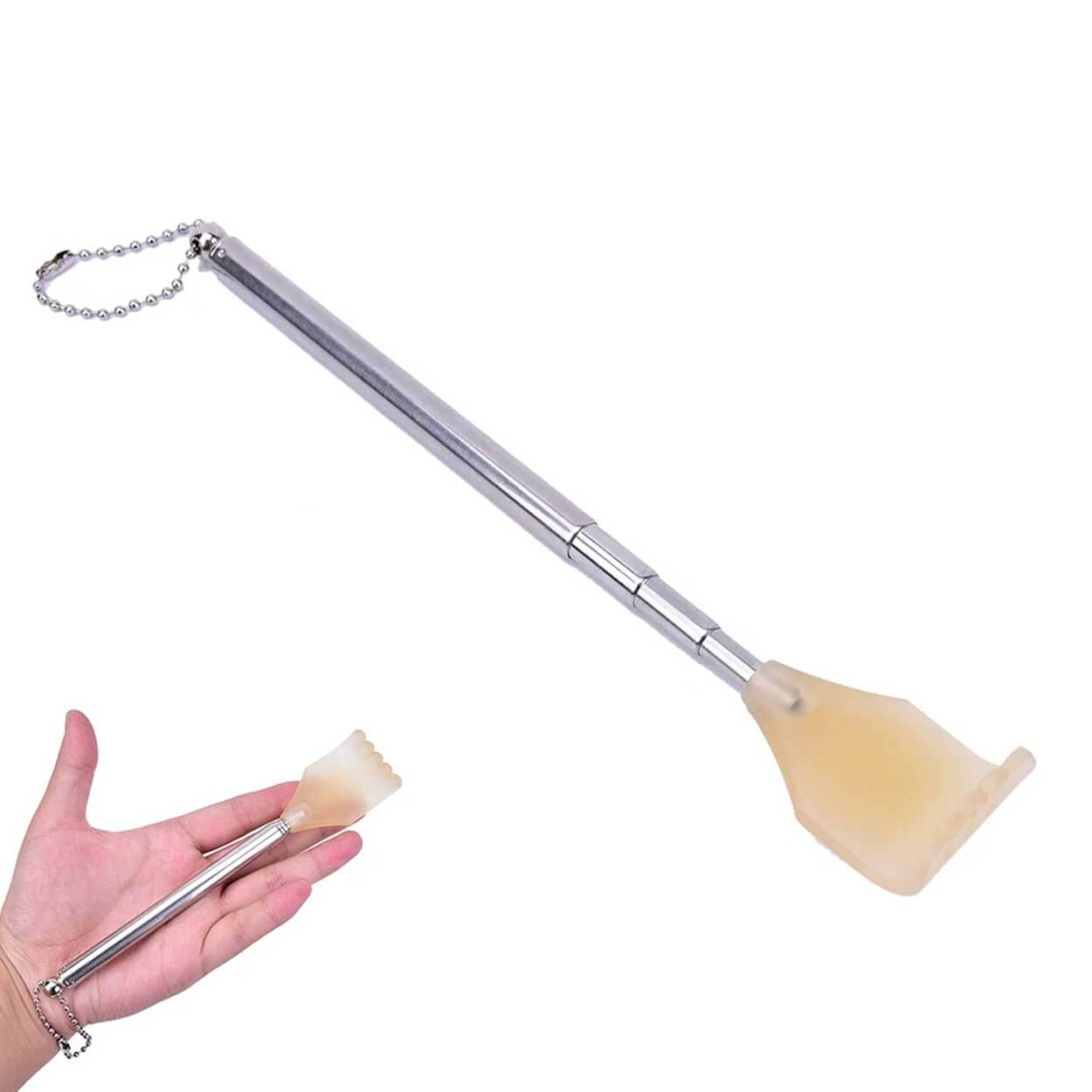Hopfällbar ryggkliare som gör det enkelt att klia ryggen själv utan hjälp. Den teleskopiska konstruktionen kan ställas i tre längder, 17 cm, 28 cm och 43 cm, så att du når svåråtkomliga områden med bättre kontroll. Hopfälld blir den kompakt och lätt att ta med i väskan eller förvara i en låda. Passar för snabb lindring av klåda hemma, på jobbet eller på resan när du vill ha ett smidigt hjälpmedel nära till hands.