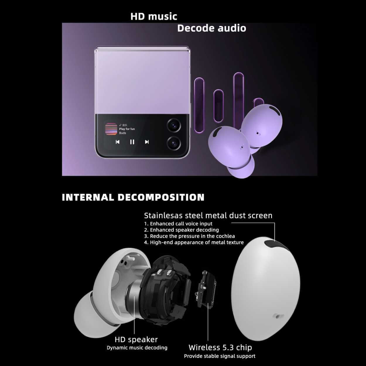 TWS hörlurar / bluetooth hörlurar – trådlös musik, samtal – bluetooth 5.3, IPX5