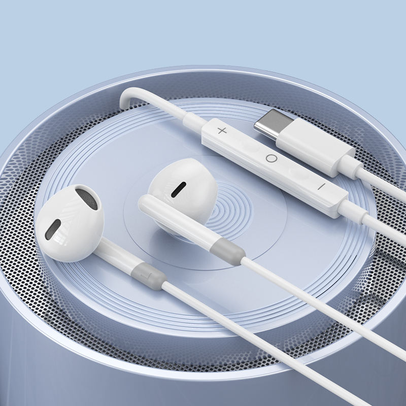 Trådade USB-C in-ear-hörlurar med inbyggd digital DAC för stabilt ljud direkt från mobil, surfplatta eller dator. Mikrofonen gör det enkelt att ta samtal och använda röstchatt, medan volymkontrollen på kabeln ger snabb justering utan att röra enheten. Frekvensomfånget 20 Hz–20 kHz och känslighet på 103 dB ger tydlig återgivning för musik, poddar och spel. IPX3-klassning hjälper mot svett och lätt regn. Konstruktion i ABS-plast och PVC ger låg vikt och tålighet.