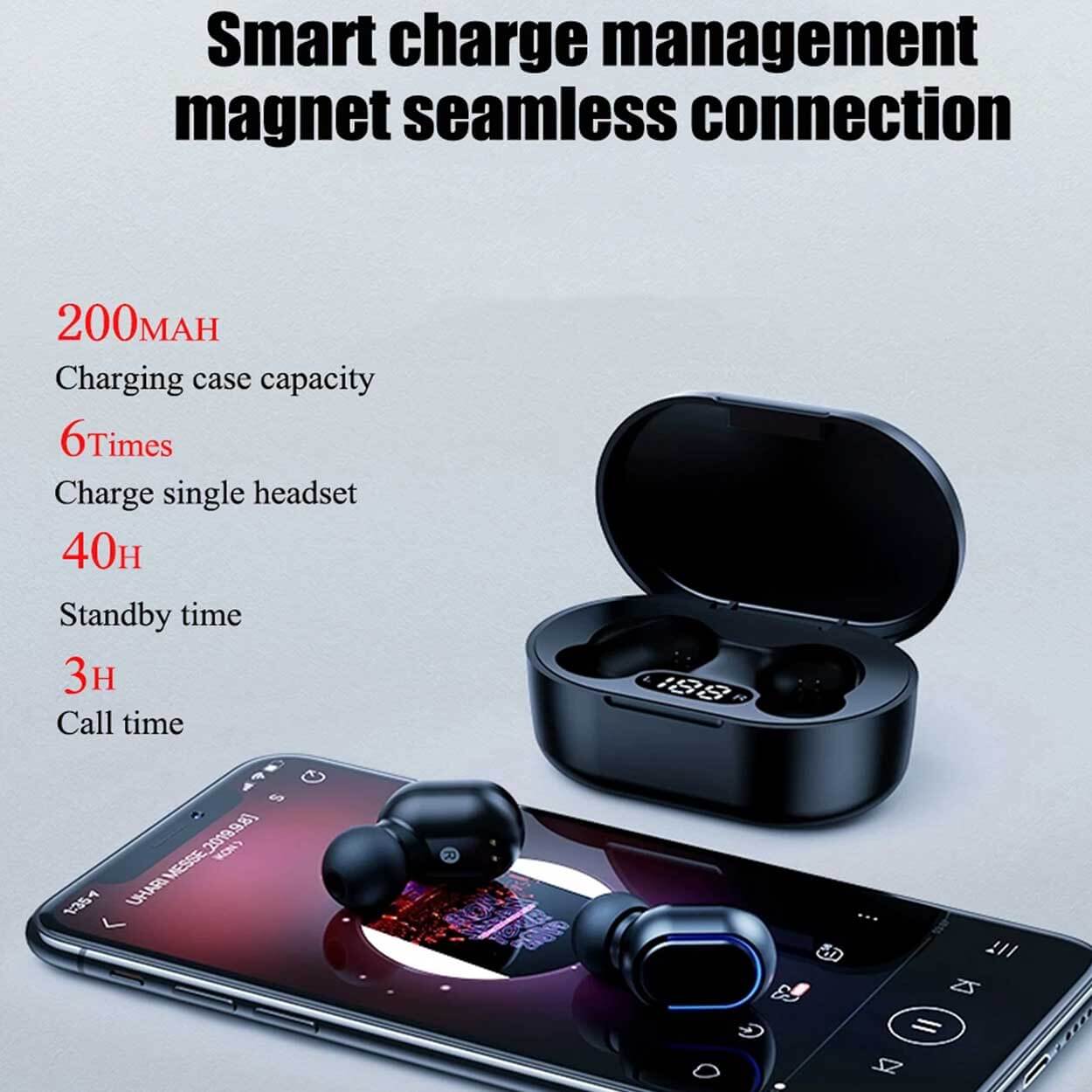 Helt trådlösa TWS in-ear hörlurar för musik och samtal via Bluetooth. Touchkontroller gör det enkelt att pausa, byta låt och svara utan att ta upp mobilen. Laddfodralet har batteridisplay så att nivån kan kontrolleras direkt, och ger extra laddning när du är på språng. Hörlurarna kan användas tillsammans eller var för sig och fungerar med både Android och iOS. Speltid är cirka 2,5–3 timmar per laddning, standby 20–60 timmar och laddtid cirka 30 minuter. Silikontoppar i tre storlekar ingår för bättre passform.